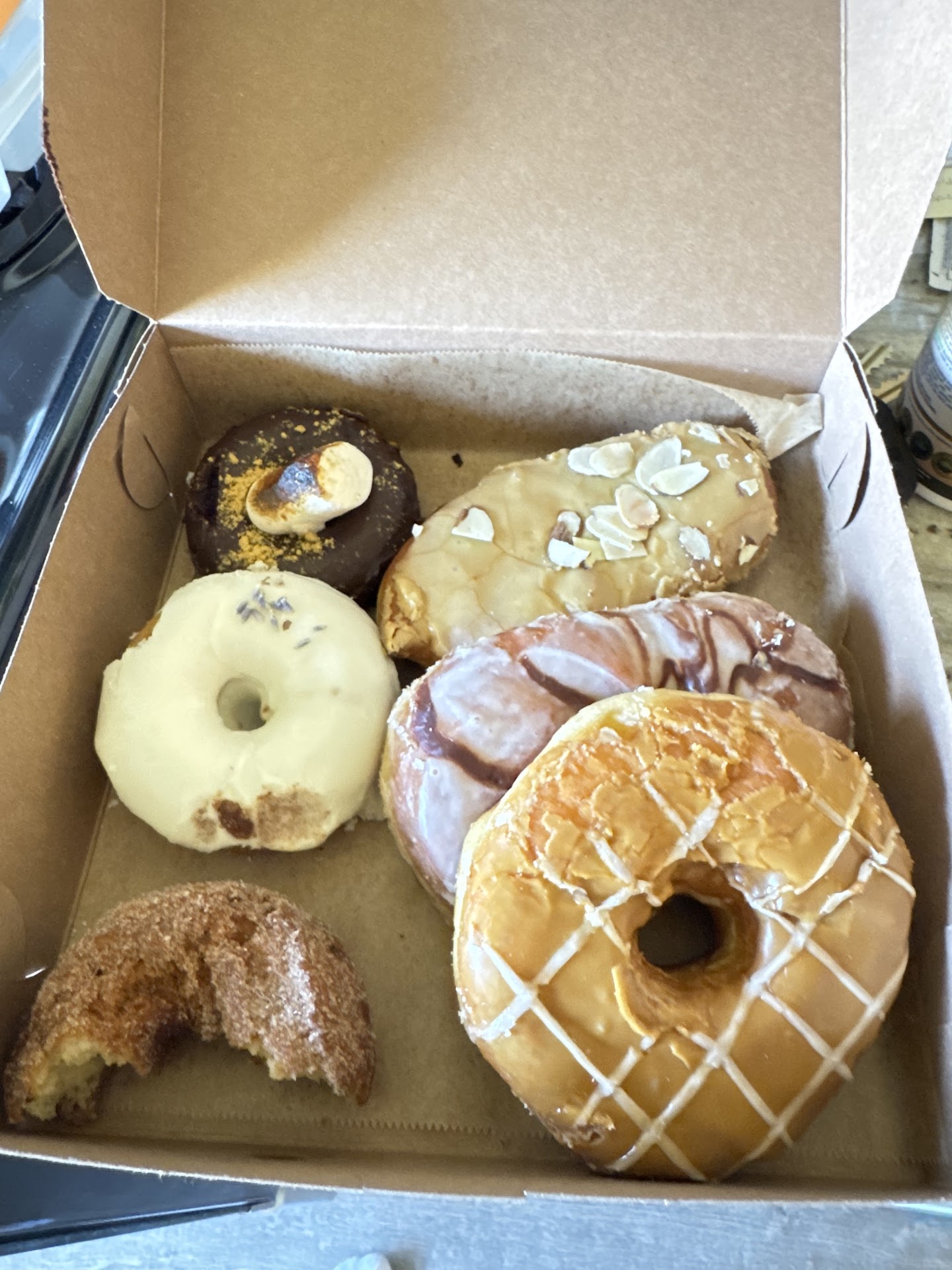 Read moreSo cute!!! I’m new to the area, recently moved here for work, and I saw this place as I was walking to my car from a lunch date with a friend. I was afraid they were closed but nope, they were definitely open! I’m not vegan or vegetarian and thought I’d taste the difference, but you really can’t! If anything they’re better than a “regular” doughnut. The sales associate was so kind and patient with me, she went through all the different doughnuts they had for sale. I got 6 different flavors and was told they keep better in the freezer (it’s just me and there’s no way I can eat 6 in a day). The portions are fairly big compared to chain doughnut shops. I thought it was very reasonably priced, approx. $13 for 6 handmade doughnuts. I don’t know the exact price as I didn’t get a receipt, I didn’t care for a receipt, I just wanted to eat them. I had to dive into the churro doughnut before I even put the car in drive. They warm up perfectly in the microwave, I set it in 7 second increments until warmed through. Despite being a smaller shop the inside feels very open and airy and definitely welcoming. I could see myself sitting here with a friend chitchatting over a delicious doughnut and coffee. Honestly, if you’re in the area you...