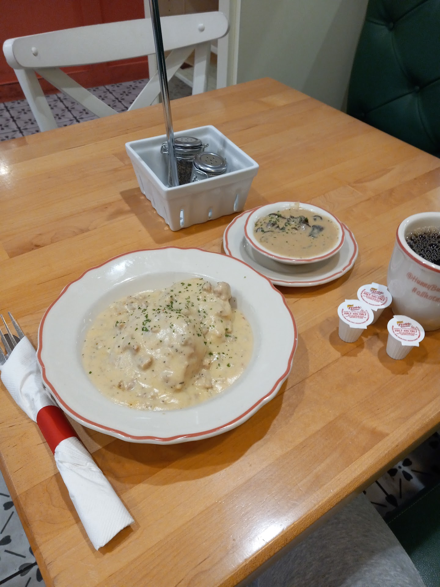 Ā Ā Ā Read moreSO GOOD!!! We ordered the hot mess, basically biscuits and gravy with cheese, tator tots and an egg, with choice of sausage or mushroom gravy. We ordered with sausage gravy, mushroom gravy just sounded weird to be honest, however, my husband realized as we were devouring it, that it was not sausage gravy after all! What a happy accident! We asked the waiter about it and he offered to replace it with the correct order, even though we'd already eaten at least half. We were not about to let him walk away with that plate, no way, so instead we asked he just bring out a side of sausage gravy. The sausage gravy was very good, don't get me wrong, but the mushroom gravy was OUT OF THIS WORLD! Mushroom gravy probably isn't something I would've chosen without a recommendation, so I'm very grateful they "messed up" my order.