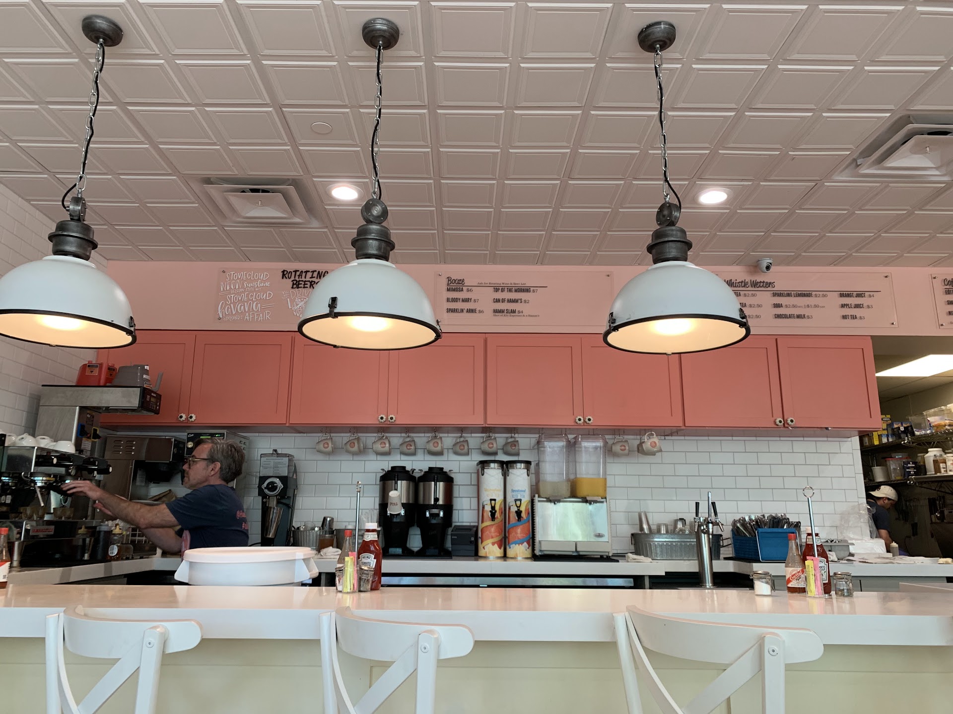 The best way to describe H.B.B is contemporaneous, at first you get hit with bright colors but soon you start to realize from the white-tiled ceiling to the salmon color cabinets and the light grey of the walls even from the smooth wood finished tables as well as the lighting fixtures every single thing in this establishment has a concinnous feel to it. Consequently, an important aspect to any successful business begins with the management of a customer caring and determined staff.