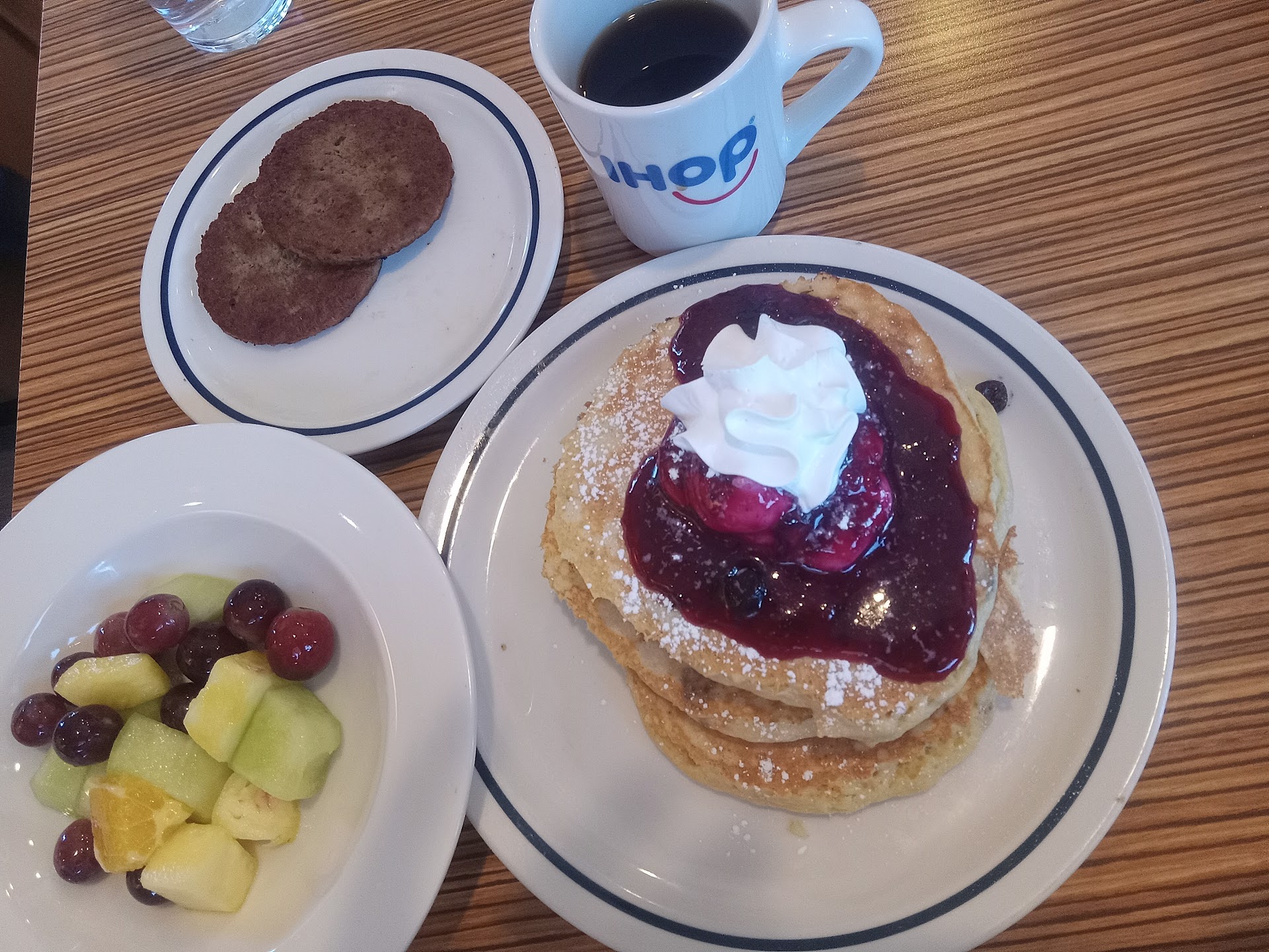 I've been hearing a rumor that IHOP has been adding impossible meat products, and vegetarian items to their menu - so I had to come look. My father is in town, so I said hey, let's go grab some breakfast and a coffee! We did. And they did, they have things now, but beware - their menu is very misleading. To classify eggs in the vegetarian or vegetable classification, declassifying it from a meet substance, is terribly misleading. An egg is an entire chicken packed into that little bubble of liquid with the nucleus, every compound found throughout the flesh the feathers the beaks the eyes the organs are all found inside that egg. Every single molecule, they just haven't mutated and grabbed a hold of each other and began to create yet. So that is not a vegetarian product, eggs are a meat product. They are anti-vegan because they have animal dna. Just like milk, just like butter, if it has animal DNA it is not vegetarian because it has animal dna. If it had zero animal dna, then it could be considered vegetarian or vegan because it has no animal DNA. I understand vegetables don't have animal DNA that's why they're called vegetables, but the food was good I went ahead and ordered a lemon ricotta protein pancake plate, a side of fruit a side of impossible sausage and a coffee! And my breakfast was very good. If you're serving a vegan or vegetarian, cook your food in the spot that meat doesn't touch. Get a hot plate or something just for those particular people to eat, because if they come in expecting to have something safe to eat and it's not, it could come back on your restaurant - some people are allergic to the particles and that's why they can't have them, some isn't a health or Diet Choice it's a life or death decision. Eggs cannot be vegetarian, inside of an egg is every single individual molecule of the entire Bird that's going to grow from it, just like within the egg of a human. The beak, the organs, the feathers, the claws, the skin, the eyeballs, the brain, every single molecule Has It came together, it doesn't until the rooster comes along and it drops it spermine and some of the carbonized formulas purple and gets through the shell, it creates a burning acidic radioactive reaction that shoots a spark through the entire egg, from then all cells start coming together and forming, as they mutate they split, so an egg is not vegetarian safe it is 100% animal. Just like using whey as protein. You cannot call it vegetarian safe because it comes from an animal, it is in fact animal tissues. The enzymes come from the animal kingdom, it is made to nurture animals, the type that it was gathered from. Therefore if the contamination for vegetarian, you can't swallow something that's from the meat classification and it be vegetable safe. Eggs don't grow from the ground, the proteins that come from milk are in the animal kingdom. Fix your menus stop...