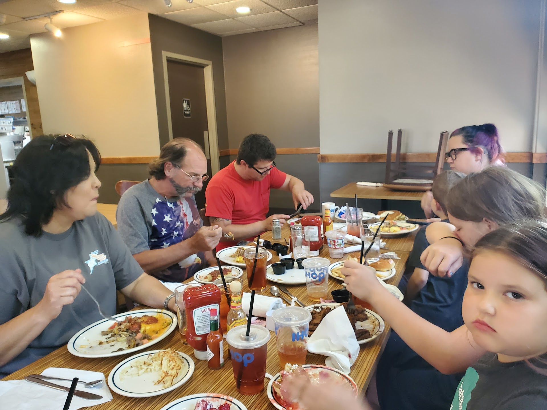 Read moreDon’t let the exterior makeover fool you. The service was horrible. We walked in at 4:45pm there were 3 tables seated in our section(4 including our table). Our waitress came by and asked if anyone had helped us about 5 minutes after we were seated. She took our drink order and then shortly brought our drinks. Our food order was taken shortly after the table next to us. We waited...and waited... and waited... There were SEVEN tables in our section that had food orders taken but NONE had been served their dinner in 45 minutes. It was 6:10pm when we received our order for five(3 adults and 2 very hungry kids). That is an HOUR AND TWENTY-FIVE minutes after we sat down. This was not a complicated order at all. I consider our bacon, eggs, and toast to be a simple order. In the meantime we witnessed multiple workers standing around aimlessly by the kitchen and coming by to tell ALLthe tables it wouldn’t be much longer multiple times. We also saw our waitress eating fries off of a plate in the hotline in the kitchen!!! I tried to watch to see if she was going to serve that plate to anyone but didn’t see her take it out. Workers should not be eating or touching anywhere near their mouths while they are serving others food!!! Disgusting. They brought our food out and my daughter’s egg was COLD and they still managed to get two of our orders wrong (gave both of my kids two pieces of bacon instead of the 1 sausage and 1 bacon they requested). Absolutely horrible service! They need more cooks as far as I can tell. Not sure what the problem is, but we will NEVER go again. There were only three tables out of seven served their food while we were there. The store manager needs some serious help with proper training. I felt as if we were on some reality ‘How Long Would You Wait’ reality show. Do NOT ever go to this IHOP unless you have a few...