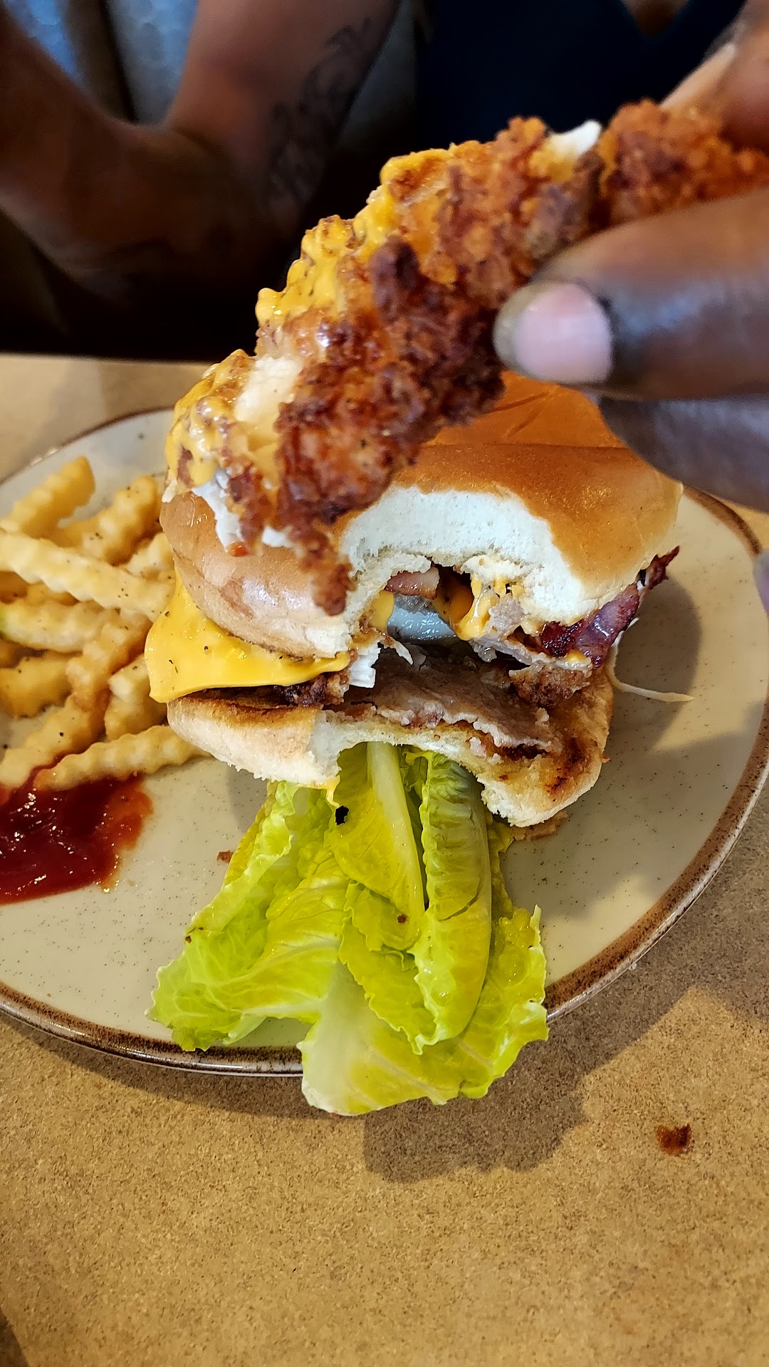 The food is garbage. If you're going to charge me $15 for a burger and fries, it should probably taste better than a cheeseburger off the dollar menu at McDonald's.