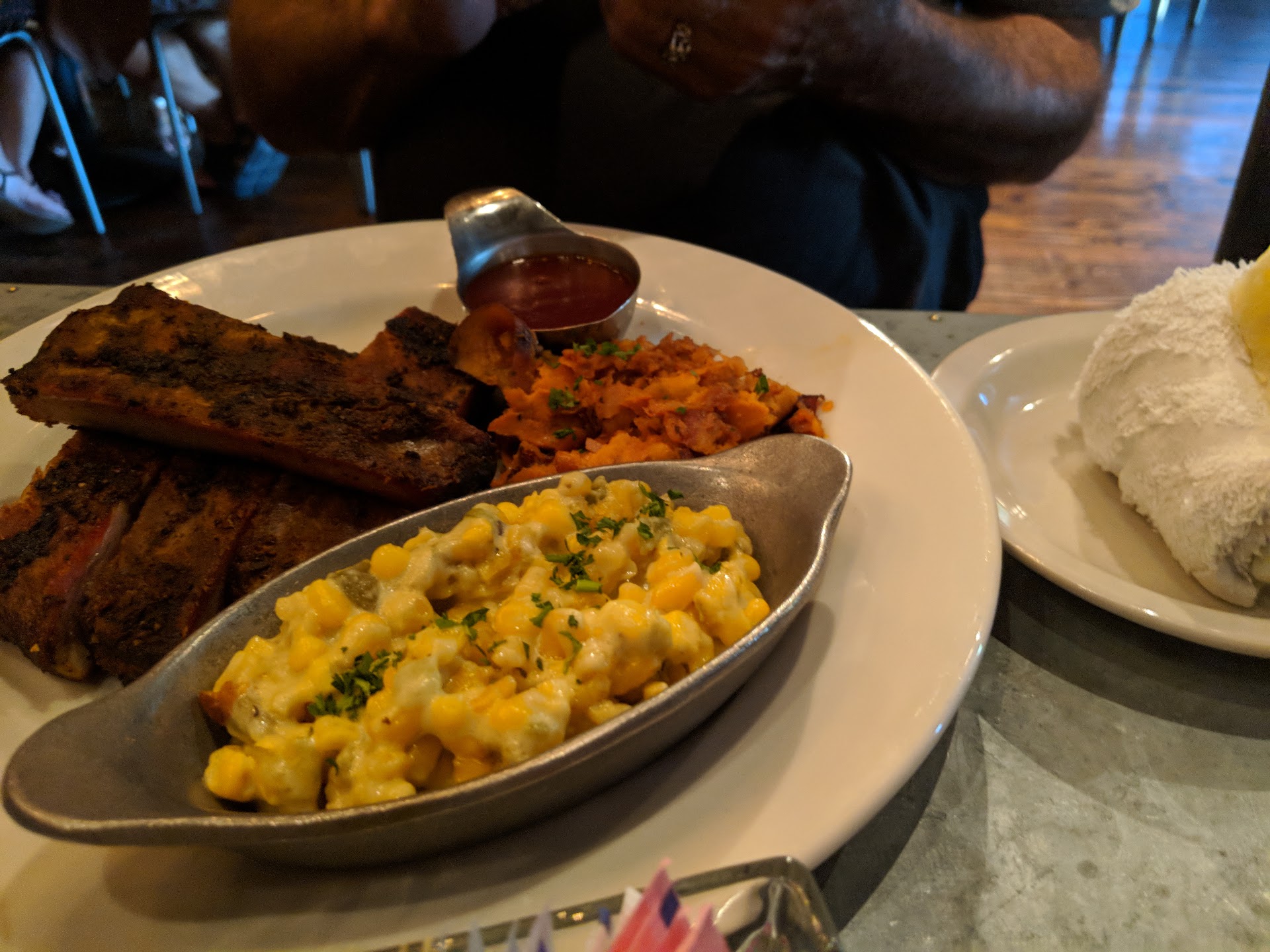 Read moreThis was great from beginning to end omg my bf has been trying to get me to go here but I don't believe everyone can bbq so I was nervous but then smacked in my face with burnt ends that taste like your Pappas, sweet potatoes that taste like your grandma's, greens that taste like your cousins well mine not yours lol. The service when we entered was so inviting and warm!!! The smell was oooh weee so I knew I was in the right place and they have a full bar!! Mhmm girrrlllsss full bar!!! We were sat and given the choice of where we would be more comfortable I loved that!!! Aiden helped us and was very very helpful and patient I was new here and wasn't sure what I wanted. They brought out our appetizers the burnt ends queso and lord o mercy yall who every in the right mind thought of that smh kiss him!!! Them!!! Aiden asked if we were ready for our food to be brought out and we were so the large portions were overwhelming but oh how I tried to eat mine and most of his. We got burnt ends and ribs sweet potatoes fries, potato salad and the beans and they did not miss anywhere yall smack smack oh I'm sorry I'm over here eating these left overs honey because even warmed up smack smack smack lol but the best part was a very warm spirited lady with big smile asked how everything was and wanted to make sure we enjoyed everything I was completely impressed and can not wait to go back and enjoy the atmosphere!!! Also I am slightly hard of hearing and it was not so loud that we were not able to talk soft to each other I can yell but I never had to. I read the other reviews and completely disagree with any that gave them bad reviews but everyone can have a bad day but I encourage people to always say when they are not happy because I believe these are Good people here and from what I experienced are willing to go above and beyond within their means to make sure that you are satisfied with your experience just speak up people. Hold them up don't hold them down!!! Blessings!!! And...