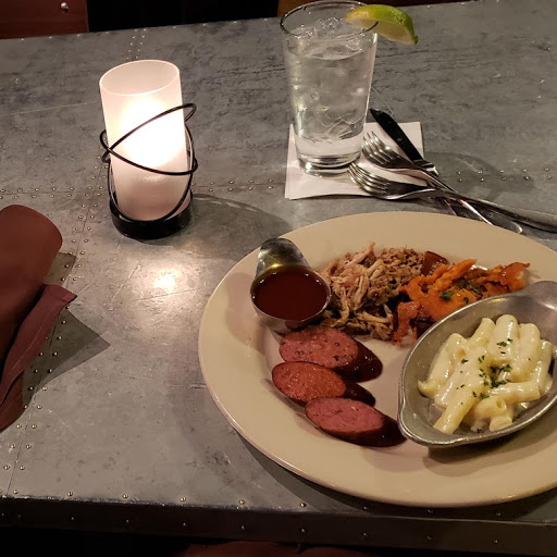 My wife and I went to this restaurant for the first time on 1/9/19. I had been wanting to try it for some time and it was well worth the wait. Was seated promptly and our server came over and was very attentive and kind. He took our drink orders and came back quickly with them. I mentioned to our server that it was our first time eating in this establishment. I asked what he suggested on the menu and he told me either the chopped beef brisket sandwich or the combo plate. After some debating, my wife and I opted for the combo plate (a choice of 2 of their smoked meats). We chose the pulled pork and the sausage. They actually have 3 different types of sausage: jalapeno-cheddar, hot link, & black pepper. Also, chose the "fancy" mac & cheese and the dutch oven sweet potatoes. I asked if my wife and I could split the combo plate and he informed us that that was perfectly fine. Food came out maybe ten minutes later and they split it evenly onto two different plates. Everything tasted great--the mac and cheese was quite good. I asked what type of cheese they used to make it and our server informed us it was gruyere. Enjoyed the 3 different types of sausage and the pulled pork was also very good. My wife and I were both fairly full at this point. After we had finished our combo platter, a woman came by our table and asked us how we liked our entree and we both told her that everything tasted great. Not long after she came back by and told us that since it was our first time eating there, they were going to bring us out a dessert free of charge. I thought that was great and it really showed that they valued us being there as patrons. Maybe five minutes later, out came a double chocolate bread pudding. I am not a huge fan of bread pudding but I have to say, this was quite good. Dessert featured chocolate chips and a grand mariner glaze that was very sumptuous. Finished the dessert, paid, and thanked our server for the free desert and grade-A customer service. Also informed him that we would definitely be making another visit. All in all, I am glad that my wife and I finally tried out this restaurant. I would most assuredly recommend stopping in the next time you are looking for a great meal that is reasonably priced with wonderful...