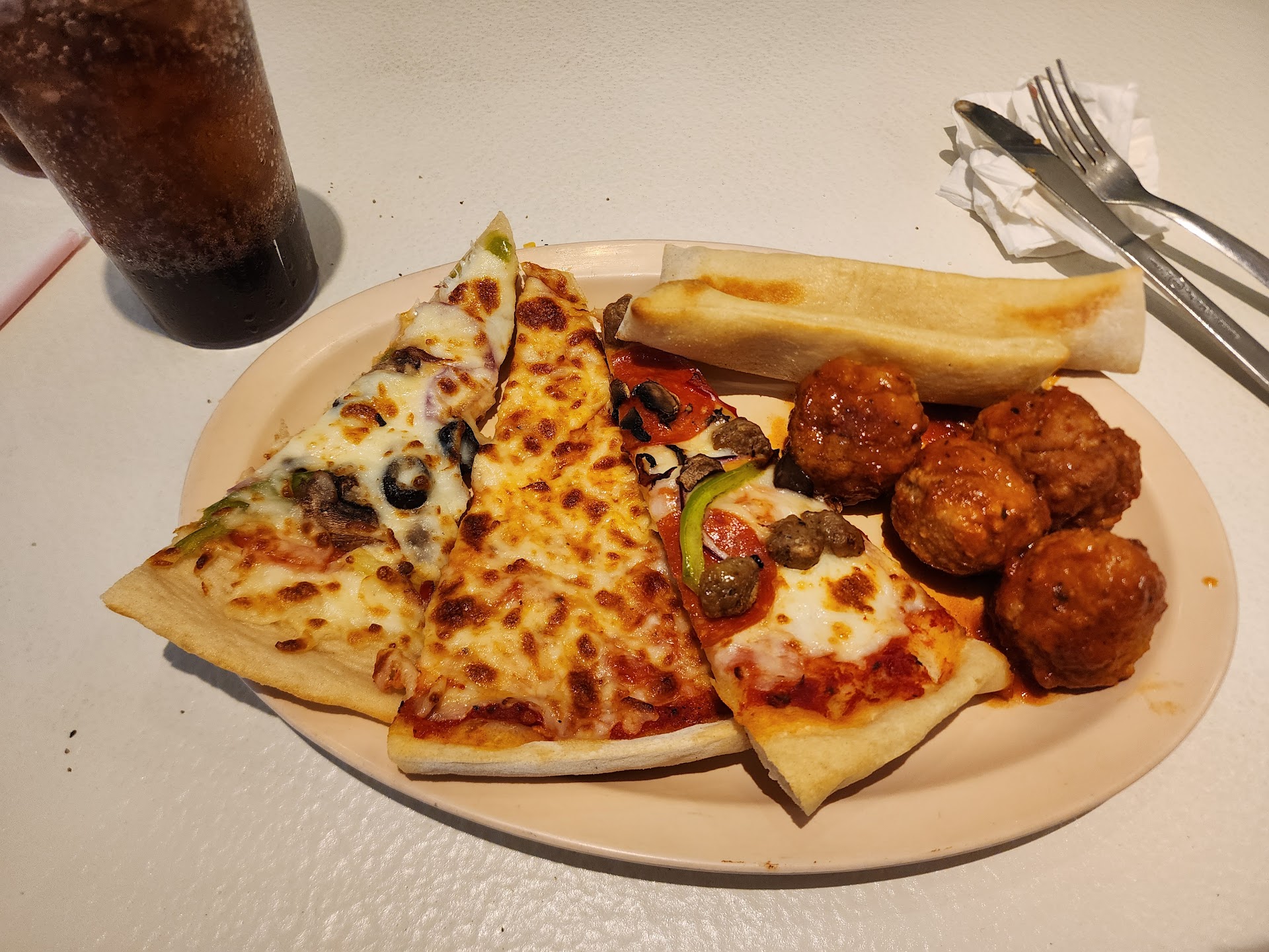 Read moreI eat here probably once a month or so with friends who work downtown. The food is fantastic. Buffet usually consists of salad bar with lots of dressing options, a fantastic lasagna, undressed penne and spaghetti next to sauced meatballs, alfredo and tomato sauces, cheese stuffed ravioli, minestrone soup, breadsticks and four kinds of pizza: supreme, pepperoni, veggie, and cheese. Fountain drinks are always fizzy and service is consistently very good and down to earth. Anyways, this place is extra super busy at lunch time, but I've never waited more than a few minutes for a table.