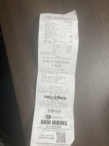 Read moreThe food was absolutely great, it was the first time my family and I ever had Jack in the Box. We made a mobile order for inside pickup as we've never had it before and didn't want to hold up the line in the store trying to figure out what we wanted. We arrived and walked to the front door at 8:02pm, front door was unlocked and we walked right in. Immediately upon walking in, the lady at the front counter gave us an angry look and quickly muttered that the dining room was closed. She then began to roll her eyes and mutter things under her breath. We told her we had a mobile order for inside pickup and she seemed very annoyed, at this point, the man who was working at the time said just park up front and they'll bring the food out to us. We obliged and waited a half hour outside on the front sidewalk for our food.