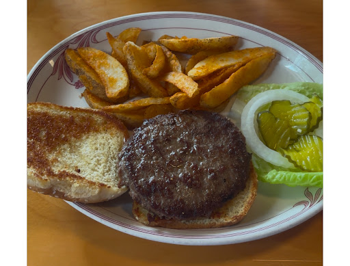 Our group of six arrived at 11:15 a.m. to an almost-empty café. It still somehow took nearly an hour for everyone’s food to come out — and we’re talking simple orders here. My burger and fries (bland despite their seasoned appearance) arrived quickly, but others sat empty-handed for so long I had finished eating before they were served.