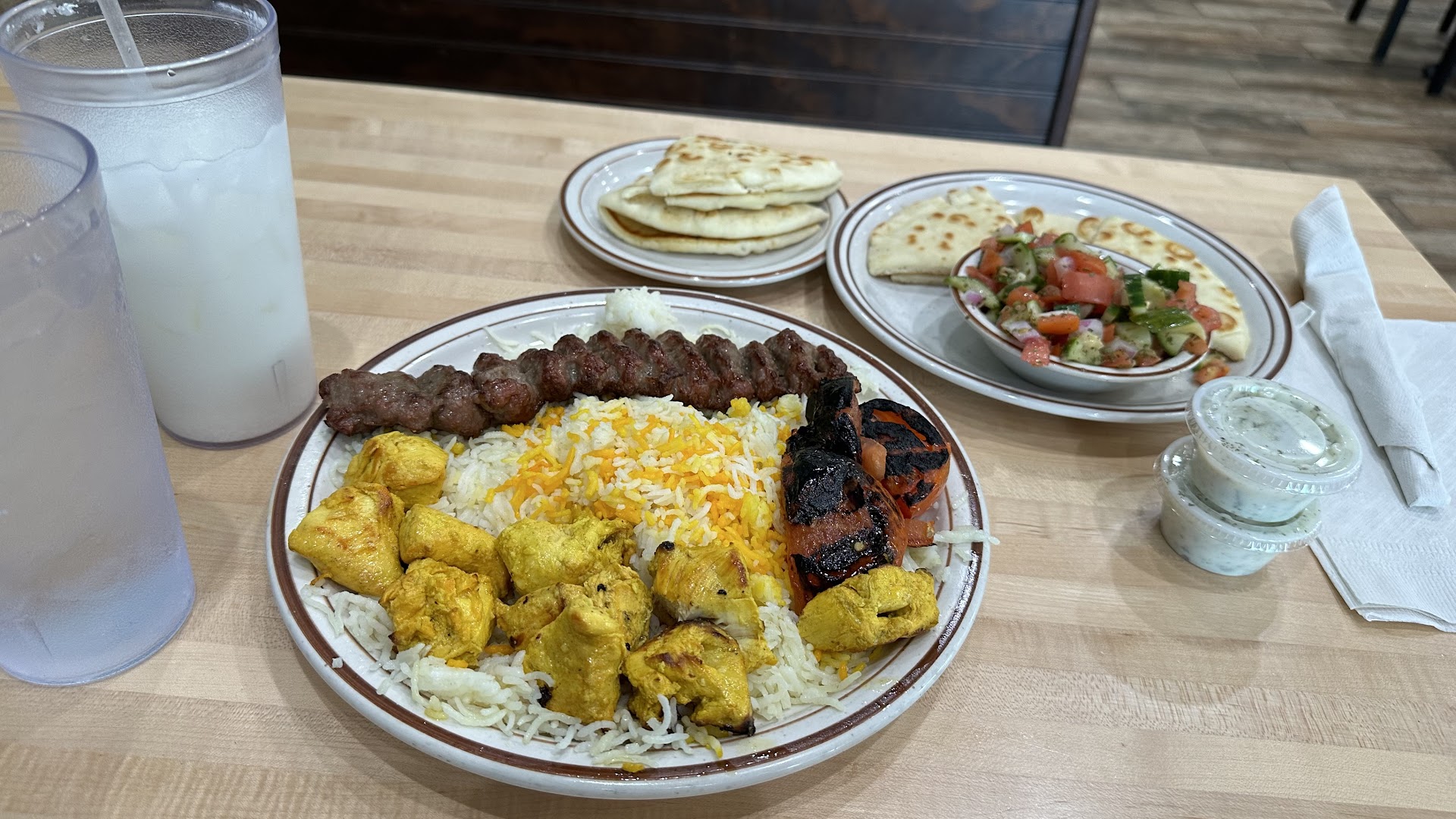 3 of us went into and tried the Baclava, gyro plate, kabob plate, beef gyro and tabouli. The Baclava was good, but had some disappointment since it wasn’t fresh. Kinda expected that though. Gyro beef plate with fries was awesome. Fries are. Outstanding and gyro meat very flavorful. The Kabob plate was the mix with chicken and beef and rice. Rice was not quite cooked enough and chicken was somewhat bland. The Beef Kabob was really nice. The Tabouli was really tasty and good. The gyro was good as well. All food that should have been hot temp was hot. The salads that came with the platters were good but should have been colder. Overall, we will be back. Great first impression and with a few tweaks this place should stay busy,, good...