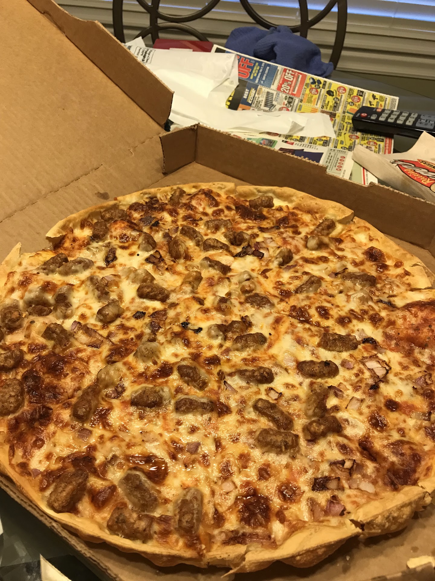 NOW... STRIKE FIVE It all tastes like crap. The moisture made pizza AND cinnaboli DOUGHY.