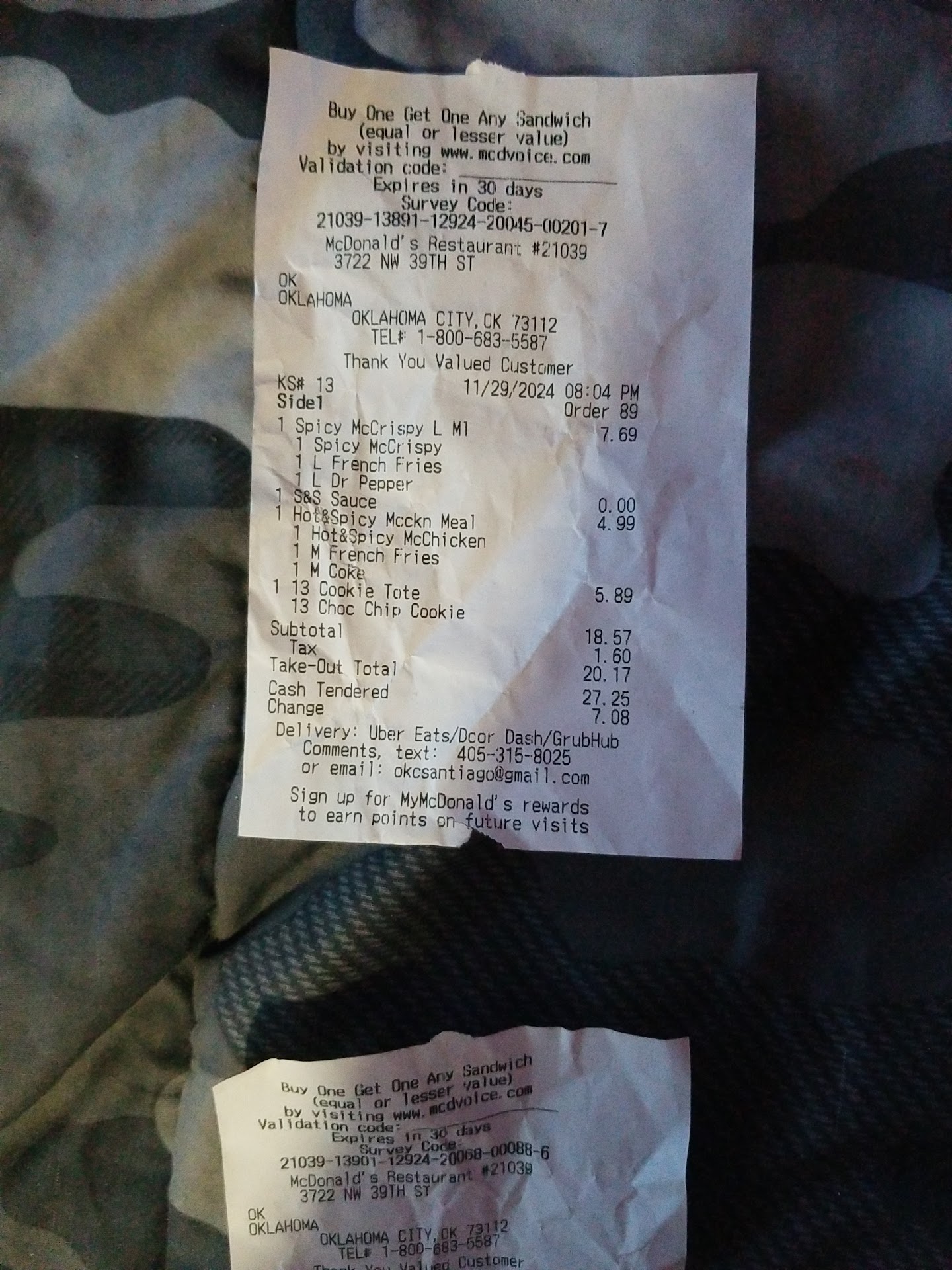 I've been going to this micky d's for 7 years and usually have a very nice Hispanic woman working the register . But on 11/29/24 @ 8:04 pm My friend and I came through the drive-thru and made separate orders and I was told my total was $27.17 when actually my total was$20.17 I handed him 27.25 and all he gave me was .08 and mind you I was in the passenger seat so I wasnt paying attention to the screen because I couldnt see it. And my driver ordered her meal and her change came to $8.86 and she gave a $10 dollar bill and he gave her the change of $1.14 in quarters a dime and 4 pennies . No Bill's were handed out the window to either one of us . And when I got home my husband noticed the mistake in the amount of our order.so I drove back to get my money and a very short woman told me that look at him he wouldnt take my money like that and I said run the camera back be ause it will show he handed us no Bill's back . And I have both receipts that prove my story of events to be valid . And I was told I was not telling the truth by a woman that wasnt even at the register so her opinion means crap to me . Needless to say I showed them the time of the transaction and all they had to do was look at the camera above the register and they would see I was telling the truth and the two employees were lying . So what that tells me is that they are doing this to others and in cahoots together . But why argue with me when your caught . So I'm told I have to drive back again tomorrow to talk to a manager. Why is it they can take my money but not give it back. So now I'm out $2.00 plus my $7 and my time.so I'm going to go back and show my receipts and demand to see the camera. And when they see that I was falsely accused of trying to embezzle my money from them. I've worked in management in food service and I know how employees can skim a register and if hes going to so much trouble to deny his mistake that means it was purposely done . And his little co- signer is probably in on it too. I suggest management pull up his drawer reports and see how much it comes up over or short because that's how it works it's called skimming a till and I have my proof and they will be brought forward for their act of stealing from the owner and the the owners customers . And that causes us all to lose. And you need to put momma back on the drive thru because she rocks . Never got my order wrong and shes just a pleasant person to do business with . She's an asset to your company. And the negativity of this review reflects nothing upon her . But for real how many others have been robbed of their money too. And mark my word I'll be there in the morning to speak to management with my receipts. I hope this is the last issue I'll have here because this store rocks with their customer service . But this time they chose the wrong one to call me a liar because the customer is always right. Even if they are wrong you have to assume them right because if you lose the business of our huge family that has been in the car business on 39th street for years . The money that you will lose by the mistakes of people that know nothing of customer service should not cause their employer to lose alot a business because of their selfishness greed. Because not all money is good money and this lesson I promise I hope to teach this kid . Because the woman that was lying for him really wasnt helping him learn integrity. And that's a lesson she should be thought too. She must have missed that day of training. Well sleep tight because the truth will set you free. Vickie...