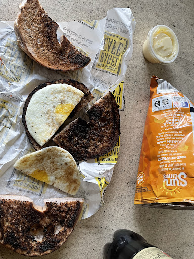 Read moreThis particular location (May Ave) is pretty subpar to be honest. The establishment is clean and they were fully stocked on all the bagel choices. I came at like 10 on a weekday morning, and it was not busy at all-- I was the only person in the restaurant and there were only about 6 people dining outside. The staff was not friendly at all. Not only was I not greeted when I walked in, but I was standing at the counter with 4-5 staff members behind the counter... Not doing much.... And they didn't acknowledge me at all. They didn't say hi, didn't ask what I'd like to order, or even tell me that they'd be with me in a second. They looked right at me, so I know they saw me. They all had longer hair, and only one had her hair fully pulled back, which I believe is a requirement for food service. The bagel was good and tasted fresh. I ordered two bagels with cream cheese. One had a LOT of cream cheese and the other had a tiny measley amount, so not uniform at all. I like a lot of cream cheese, and I didn't think to ask for extra or anything because the other locations use a larger scoop so each bagel has more or less the same amount. Both were roasted, but one was like, EXTRA toasted with super crispy edges, and one was only lightly toasted. Just overall pretty unimpressed with this location. Probably won't come back to this one...
