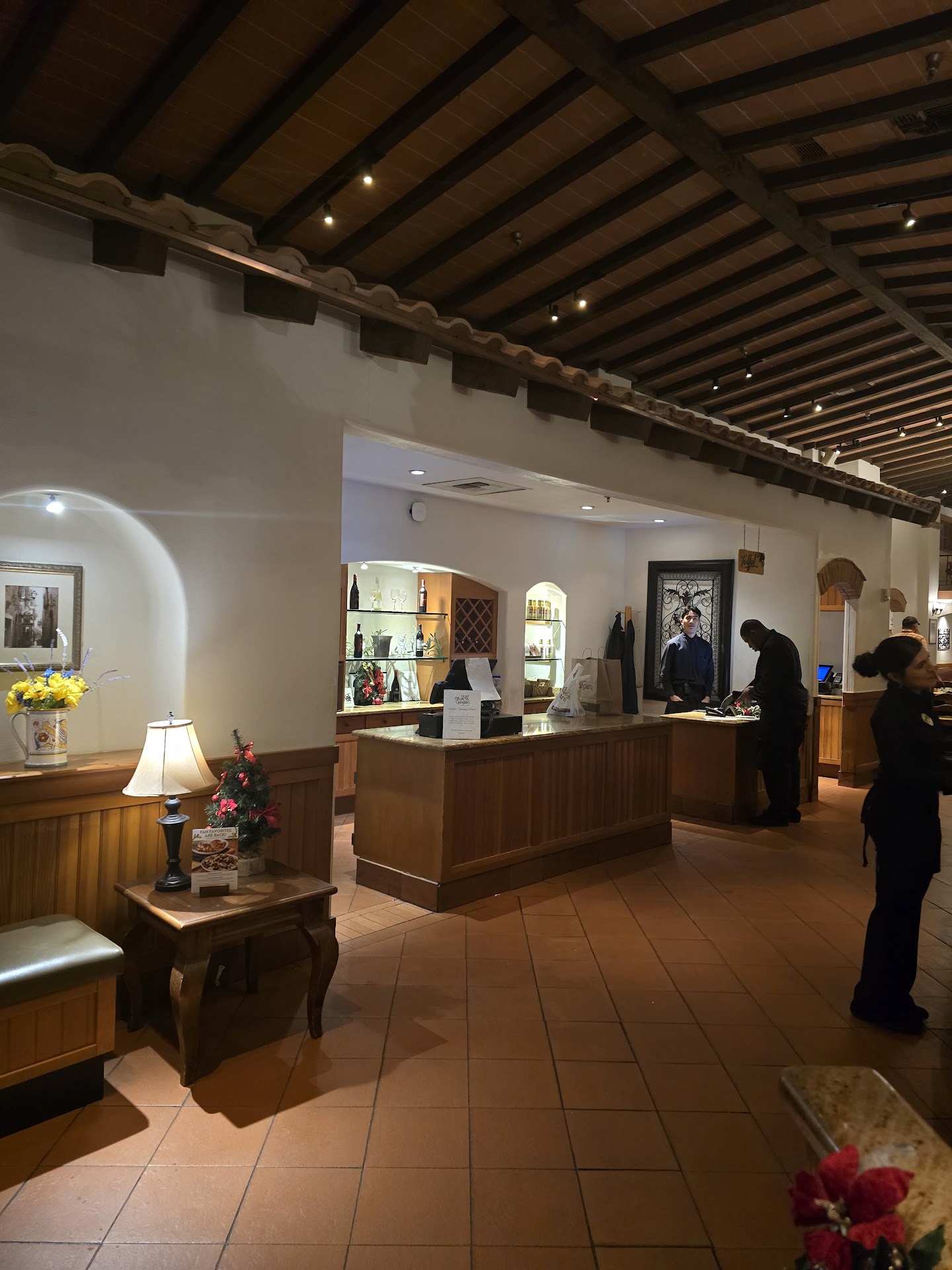 We came today for a late lunch or early dinner, whichever. I brought my son with me today and it's been YEARS since I've been to an Olive Garden so we stopped in. This one is by an Outback Steakhouse and a Hobby Lobby. There's a big enough parking lot with some parking for "to go" meals. Up at the entrance we're some patio chairs.