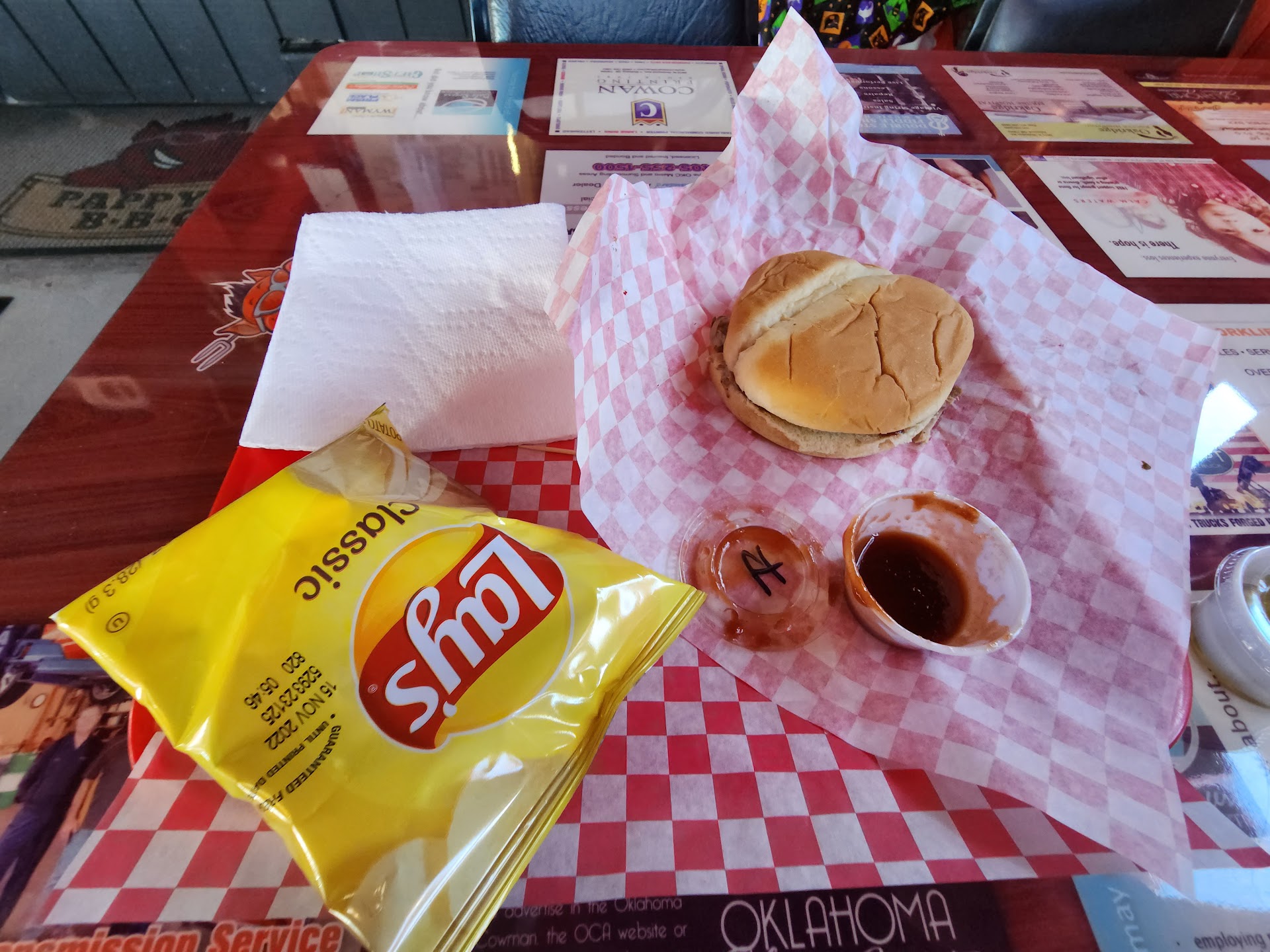 The service however, was great, the counterperson was very friendly and responsive. The place was clean and quaint (like many local BBQ spots are), and everything was generally nice inside.