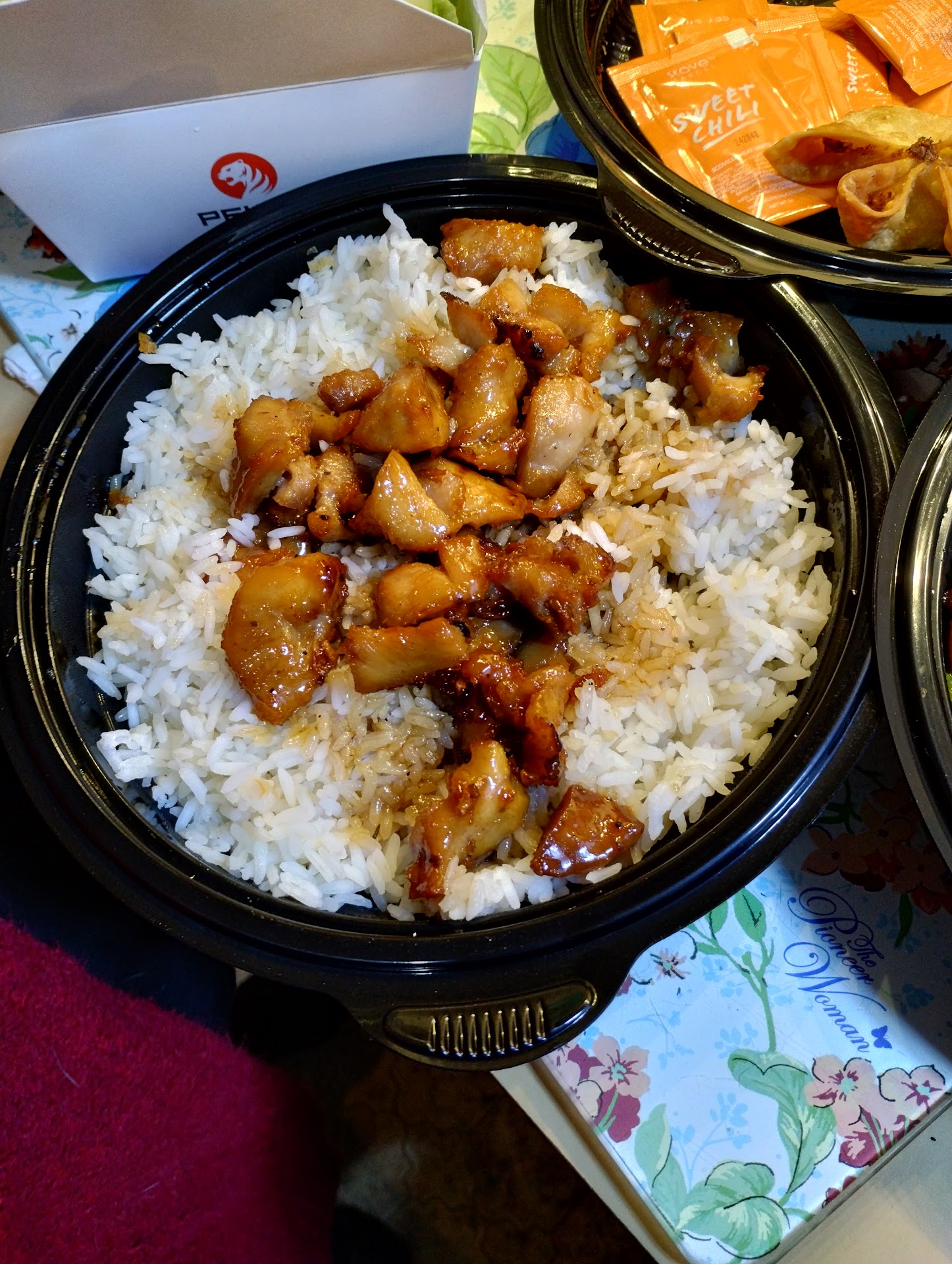 When I arrived at the location, there were many 10 minute parking locations right in front of the door specifically for Pei Wei pick up customers (which was awesome cause it was raining). I was able to run in to the register specifically for pick up orders, and my order was right there waiting for me. They had a small section right next to the register to grab whatever goodies you might want to take as well (fortune cookies, plastic utensils, soy sauce, chopsticks, ect). Total time I was out of my car couldn't have been more than 3 minutes since I had chosen to pay online.