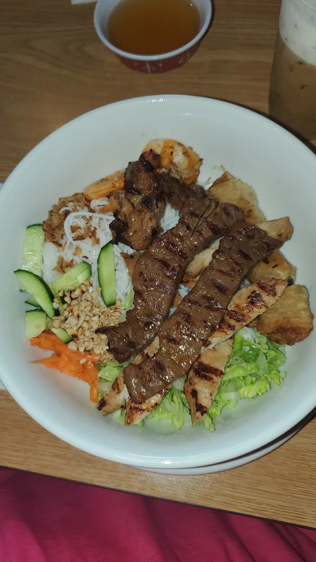 Read moreNot a bad little restaurant; way better than the place that was there. I ordered the Grilled Pork Summer Rolls, small P3 (flank, ribeye, and tendon Pho), a Coke, and a Thai tea with Boba to round it all out. Food was served quickly, but it was 2 PM when I sat down to eat. The pork rolls were probably the best I've had, with just enough of each ingredient without one overpowering the other. Thankfully, they included pepper sauce on the table to add to the peanut sauce for the rolls to give it that little extra the rolls needed. The small Pho was just the right size, allowing me to finish it and not be overly full. It could have used maybe a few more pieces of meat as by the end of the bowl, I was eating nothing but noodles despite eating both throughout the bowl in an even amount. The Thai tea with Boba (tapioca pearls, as it is referenced in the menu) was a great way to end the meal. The Boba was soft with just the right amount of chew and the drink was not overly sweet. Tab was $27 after everything, but I did order a lot of food, so the price to value ratio is definitely spot-on. Definitely will...