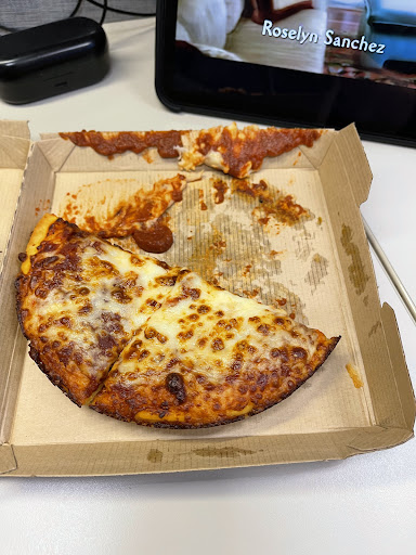 The pizza was a dark brown color & it was hard. The sauce on the pizza had dried up almost completely because it had been sent through the oven more than once after sitting out for so long. To sum it all up in a nutshell, the pizza was everything except fresh and delicious.