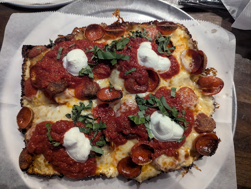 Ā Ā Ā Read moreThis restaurant is in a building called "The Parlor". It is a conglomerate of restaurants, and parking is located on the north side of the building, off of 7th Street. We ordered a NY style called East Coast, and a Detroit style called Motor City. we also ordered a cannoli, but I did not take a pic of that because it was so delicious we ate it in 5 seconds flat. Be sure to get a cannoli. Both pizzas were pretty great. The crust on the NY was fantastic. The crispy cheese edge on the Detroit was delicious. Really I only have 2 negative things. First, I did not enjoy the dollop of ricotta on the pizzas. I love ricotta, but theirs had a weird taste and texture. It was more like sour cream. I also dislike the venue. It is SO LOUD and the music is horrible. But that's just my personal opinion. Maybe you will love it. We will come back when the weather is nice and we can sit outside. Stop by and...