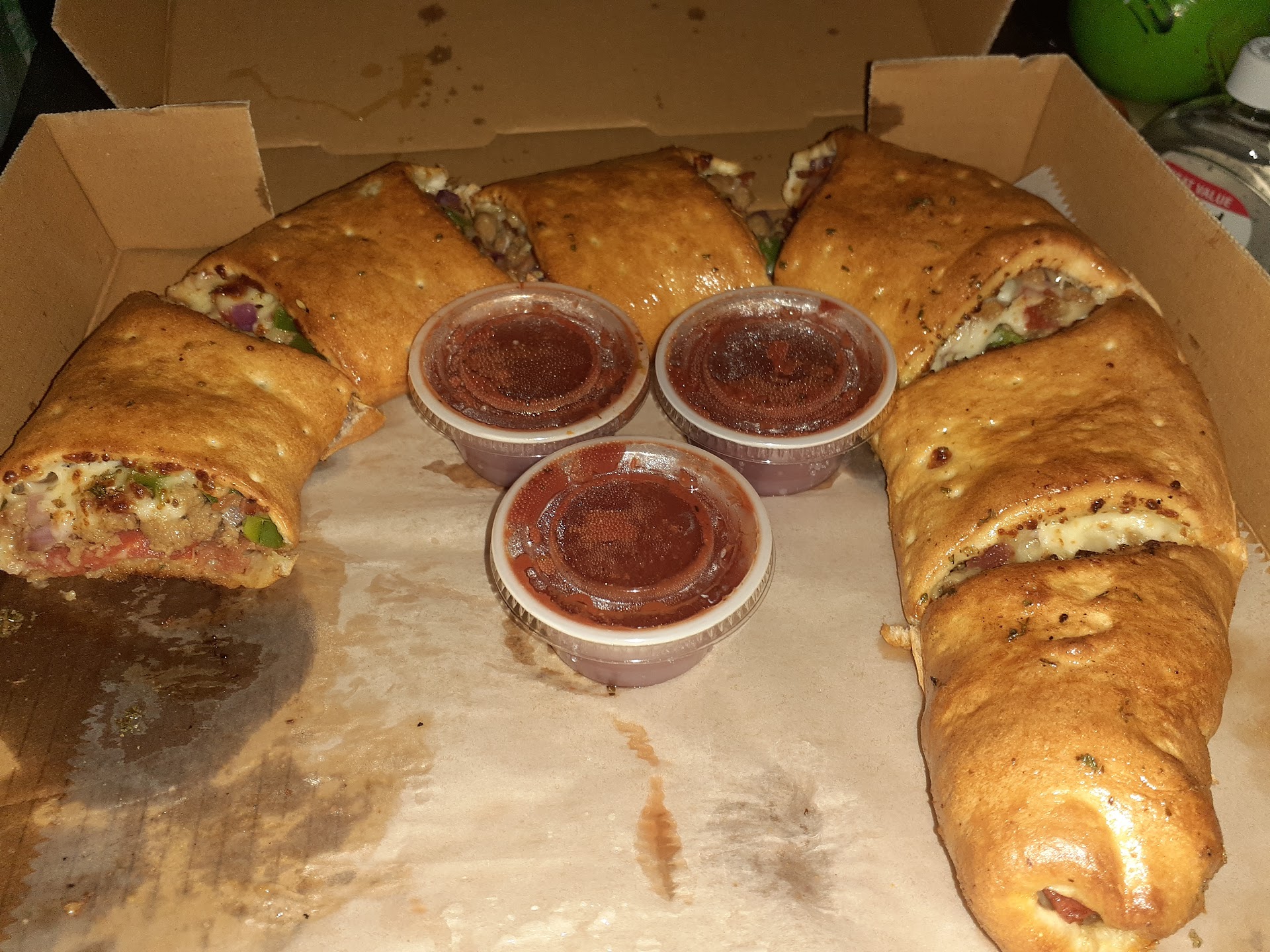 Another updated review: tried the wings again but got them well done and they were fantastic this time. BUT… paid for a stuffed crust pizza and didn’t get stuffed crust. Also ordered extra marinara and there wasn’t any extra on the pizza or with the pizza. Updated review: Got a half and half pizza. But 3 out of the 8 pieces were one kind and 5 were the other kind. So that kinda sucked but not a big deal. The garlic butter was not good. The wings were really soggy and next to no sauce so those were a waste for me, although I did like seeing they gave me all drumsticks bc I hate flats. Sticking with just pizza from here bc it is extremely good. The cinnamon dessert pizza is good too. 🔚 older review: Pretty impressed. The only suggestion I have is order extra sauce on the pizza. I'm not a big sauce person but it was put on so minimally that I couldn't taste it. They put plenty of toppings and the stuffed crust is delicious so I would definitely...