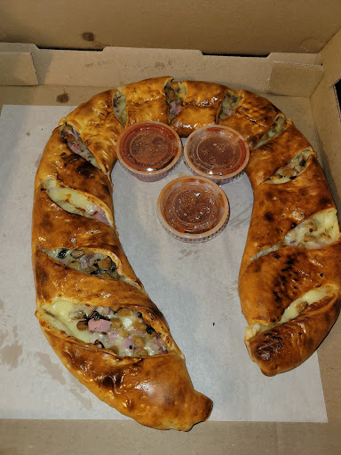 Pros: Supreme calzone is pretty good. I got a medium and they sliced it enough times to make each bite easy. Flavor is good. Highly recommend.