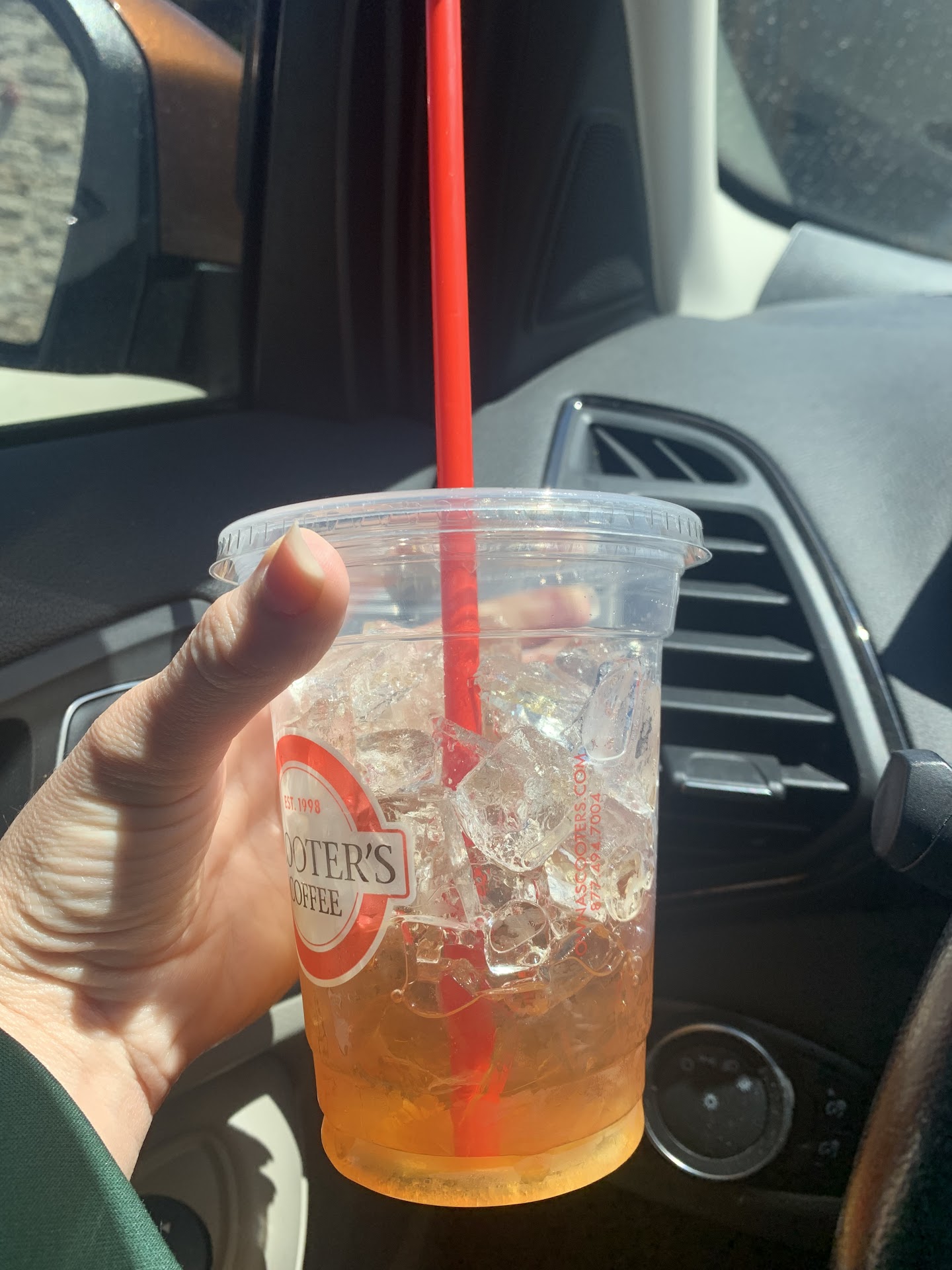 Read moreI received a coupon in the mail for a free small drink. I thought that was a nice gesture and offer from Scooterâs so I went to try it out. I donât like coffee so I was pleasantly surprised that they had a lot of other options. I ordered a sweet iced tea. Apparently, they donât have sweetened tea so the cashier asked me how many sugar packets I would like for my tea. That was a little disappointing because tea tastes different depending on when you sweeten it. Itâs much better when you sweeten it during the brewing/steeping process then when itâs already over ice. The tea itself was a little too bitter and had hints of coffee notes in it, which was not ideal. I took a picture of the ice level of my drink to show the excessive amount of ice that was in my drink for a small drink. The customer service was good though, I think I would give it another shot and just get something else other than...