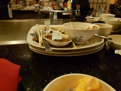 (1) It's way too dark (2)There was a dark looking pellet on the cooktop & the "chef" did not wipe it down prior to starting cooking. He dumped the bowl of rice/veggies for the fried rice directly on top of it. (thankfully I ordered steamed rice). (3) Soup & salad were brought out for 1/2 the table, then by the time the rest were brought out, the "chef" had already started cooking. (4) "Chef's" cooking order. I'm not sure why, but the cooking order seemed way out of order. He cooked all the shrimp at the very beginning. This included the appetizer shrimp & the shrimp that was part of the entrée for a few of the guest. He left the shrimp, even the appetizer shrimp, over to the side until the onion/squash/zucchini & fried rice was cooked, then he started preparing the chicken & steaks. Then he plates out in the following order: He hands out the steamed rice; then onion/squash/zucchini; then fried rice; then overcooked appetizer & entrée shrimp; then the chicken; then the overcooked steak, most that ordered steak ordered rare to medium rare. All the steak came back medium to medium well. Now, I'm not sure if you noticed, a few things were left out,... I asked the waitress after he passed out the onion/squash/zucchini, "Isn't there supposed to be mushrooms & sprouts with the vegetables?" She replied, "Oh yes, that isn't until the very end". What?,... I know it's been years since I've been there, however, the mushrooms & bean sprouts were always served along with/in with the other vegetables. Then at the end of the "chef's" cooking, he brings out the mushroom & sprouts, proceeds to cook these & passes them out. (5) Every item that the "chef" seasoned & cooked on the grill had NO flavor at all. I kid you not, I salt & peppered all of my food 4 different times. So I'm not sure if their seasoning is way out of date that it had lost the aroma/flavor or what, but even the 4 times salting/peppering didn't really make a difference. (6) The excess fried rice/veggies that were on the grill, the "chef" scraped off into a bowl. For the prices of the food, he should have offered it to our table, we paid for it. The "chef" proceeds to cleaning up the grill. Then he walks off. (7) My husband taps on my shoulder & tells me to look back. I looked to my left toward the wall, he taps & says "No look back this way, look down". Low & behold, sitting there "chilling" right there next to the wall, the entrance of our dining nook, there is a full size, big MOUSE!! This mouse is so comfortable & familiar with the surroundings, he looks up at us & gave us a "what's up" nod before he, walks, & I mean slowly walks towards the other dining guest table. He was not scared AT ALL, which lets me know, this mouse has been around this restaurant for some time. There was a teenage boy sitting at the other table in our dining nook that stated loudly, "OH MY GOD, is that a mouse?". Then our waitress said, "Oh my god it's a mouse". The gentleman, hostess, manager, the guy from the front of the house in the black suit walks over & states to the waitress, "oh boy, I guess we'll need to call the exterminators in the morning". Laughs & walks off. (8) Then our waitress brings (1) one cupcake to the table for 3 birthday guest & takes our order for dessert. They proceed to bring all of our separate tickets out with no sort of discount, comp of a single meal or anything. This means this mouse is crawling all over the cook tops, HENCE the black pellet, MOUSE POOP, on the cooktop that the "chef" dumped & cooked the fried rice contents on top of. It's crawling all over the prep areas in the kitchen, the chairs, tables, bathrooms, etc. This is unsanitary, disgusting, unacceptable. I'm even more disgusted the lack of customer service from the manager. He didn't even bother to come apologize or even talk to either party in our dining nook. We only ate 1/4 or our food prior to the mouse. BUT, our 3 dogs ate $73.54 of our 2 leftover entrees. Overpriced & unsanitary!! We...