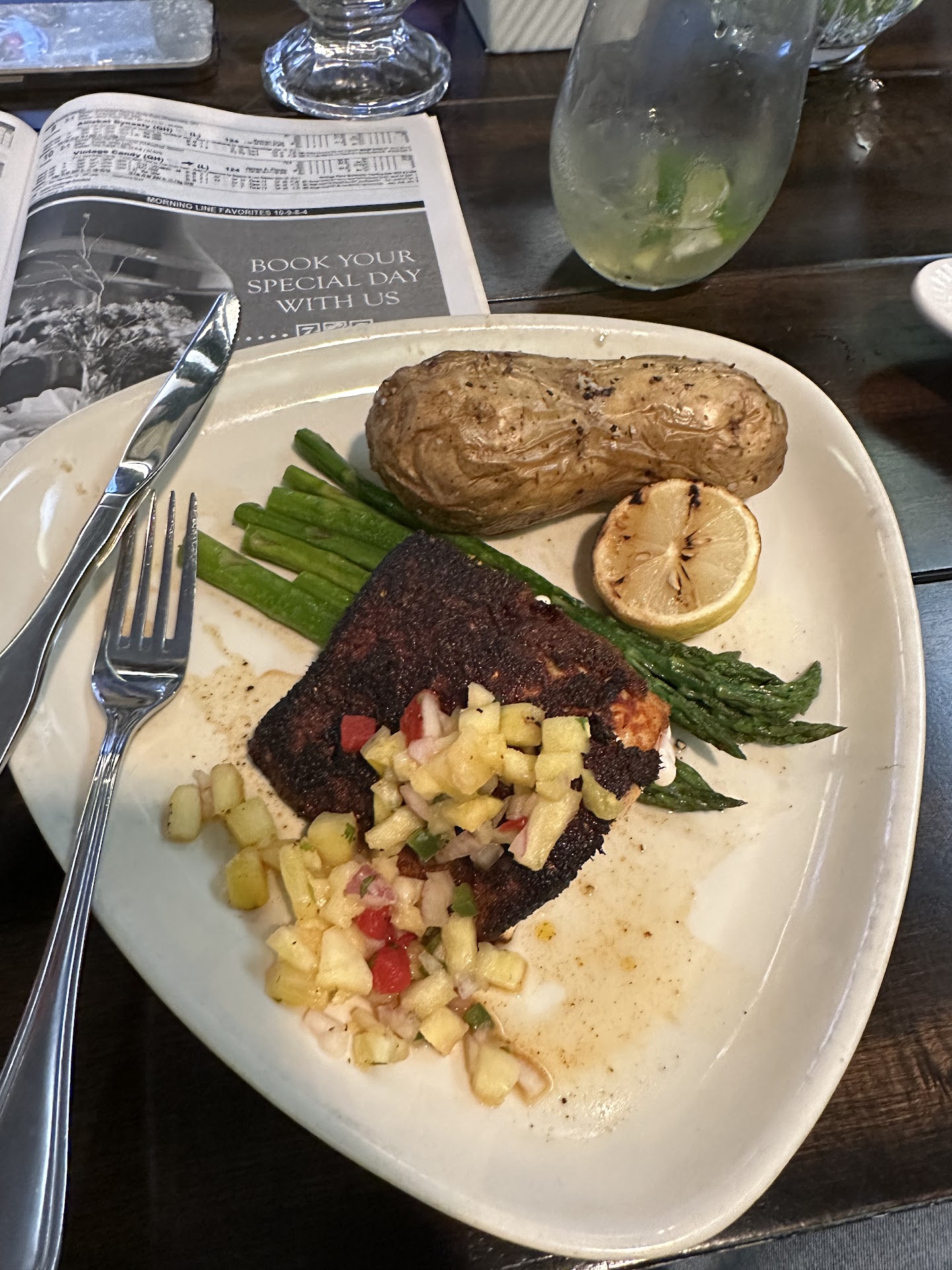 Read moreWent to the track for the $30 dinner special with my fiancee and mother. They called us ahead of time telling us that our 8:30pm reservation was to late and to come earlier if possible because the kitchen closes at 9:00. We arrived around 8:00 and the place was dead... maybe ten other people. They showed us to our table and we had to ask for the special menu. We ordered two of the $30 person specials and deserts. The food came pretty quickly but not all at once, the appetizers right before our food but not long enough for us to eat them, which was good because they were extremely bland. Next my fiancee and I got our food while my mother waited on hers. And waited, and waited and waited and finally got her food. Again the food was BLAND. Next we had to ask about betting vouchers, the meals are suppose to come with $10 in betting cash. Half way through dinner and two requests later we got them. Also the waitress never refilled our drinks, she just left a pitcher of water and walked away, good thing too because the food had to be washed down it was so bad. Finally 3 hours later we get the check and are told, "Sorry, we can't get desert the kitchen is closed." I was upset about deserts we had ordered 3 hours before and been waiting on for over an hour. I became pissed when I looked at the check, they had charged us FULL price for our meals and deserts we never got. When I told the waitress she changed our bill. Not to the $30x2+1.75 for drinks but to $68 and told us, "that's just how it rings up." When I asked for the manager I was told he'd gone home and when I called back the next day he was "Not available." Now it's Saturday, I have had diarrhea since and the manager still is not available. Another patron suggested we try the bar downstairs next time, honestly though I'm going to avoid this place...