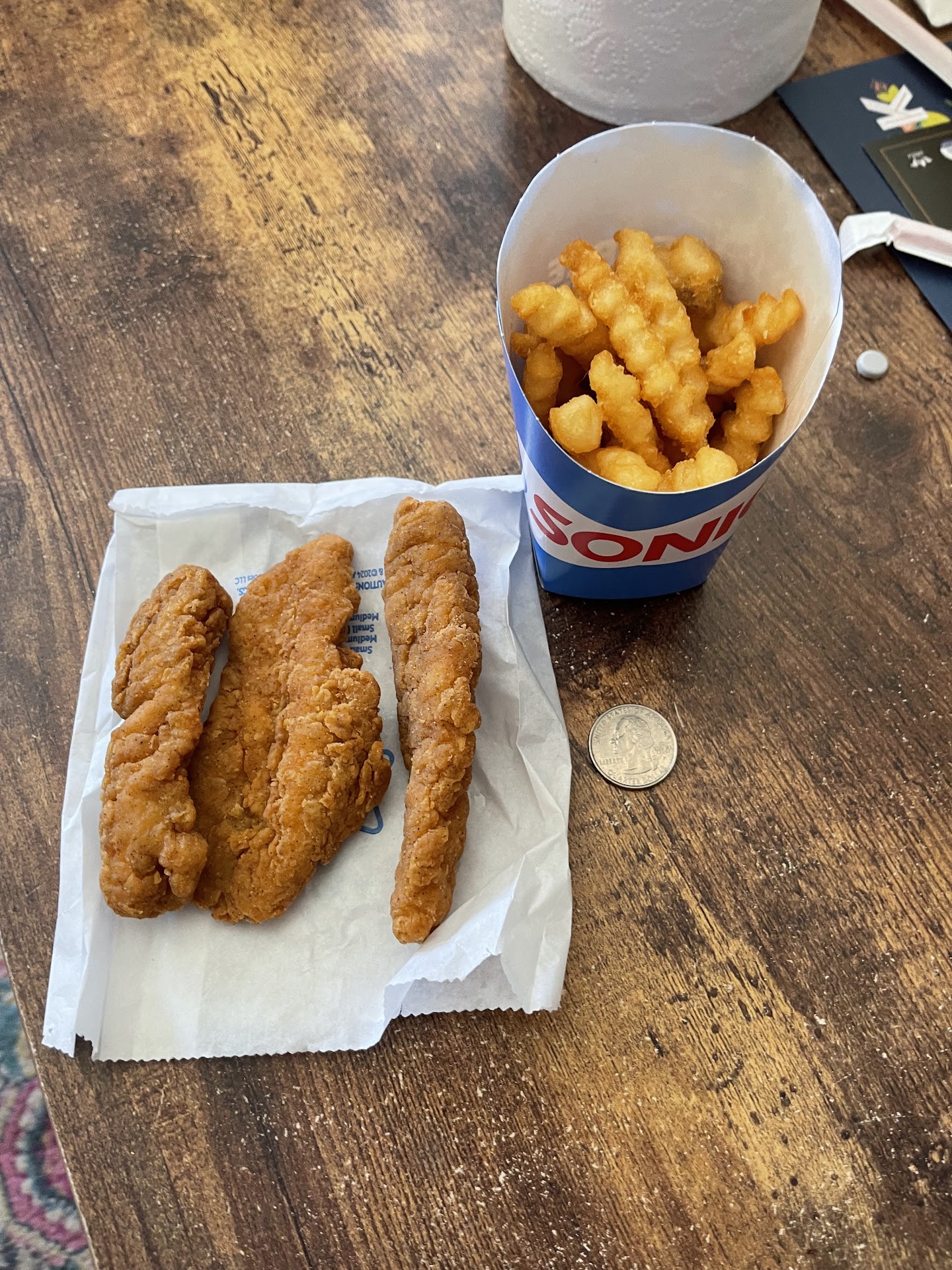 Read moreI stopped in at this Sonic a little after 9 PM 5/18/15 with my daughter. I ordered a mini malted brownie bliss and my daughter ordered a small turtle pecan blast. When we received our order I was dismayed to discover a soupy vanilla concoction with chocolate chips. My daughter's was also soupy and contained a few crunchy like things, which I suppose were pecans? I called and told them a mistake had been made. The carhop took the mini thing back and returned with another soupy looking thing. No whipped cream, "sorry, we're out." This was chocolate ice cream and had some brownie bites in the bottom. Certainly not worth the 3 dollars +tax. I'm usually happy with what I purchase at Sonic, although this is the first time I've visited this particular one. We felt like we were in the twilight zone.....I didn't complain again as we had to get back on the road. I will be talking to the manager IF they will answer...