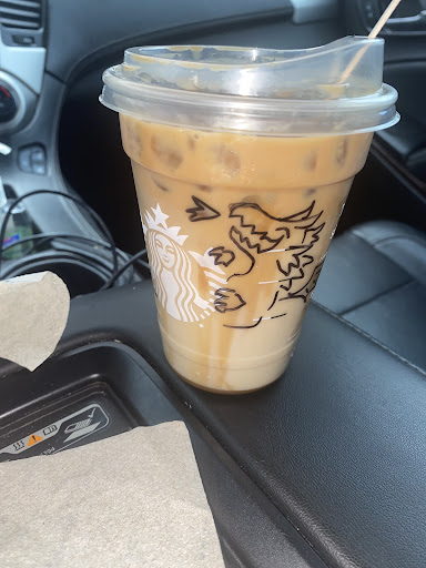 Ā Ā Ā Read moreSo I pulled in here bc the cops got behind me while my insurance had lapsed. I go through drive-thru and ordered a mocha frappe. When the lady asked my name I replied āDaenerysāā¦i get to the window and the employee was extremely nice (felt genuine and not forced), she and the prep person stated they liked the nameā¦! I smiled and replied āthank you, itās from Game of Thronesā she smiled and said āyasss totally coolā(or something to the effect) whatever she said implied that they already knew that (never happens on the SW side where I live sadly ā¦no one ever knows what Iām talking about) , she asks me if I want a free banana bread bc they had too manyā¦yes of course I want something free since I was not even supposed to be here spending the $8 bucks lolā¦.less than ten seconds later sheās handing me my drink and let me know that the other girl ādrew me something nice on itā ā¦I rapidly spin my cup looking for my surpriseā¦.once I saw it I replied that I was going to go cry! It was the most awesome thing !! Like I was not supposed to be there and Iām smiling and crying in less than 2 minutes(speedy friendly service) not even...