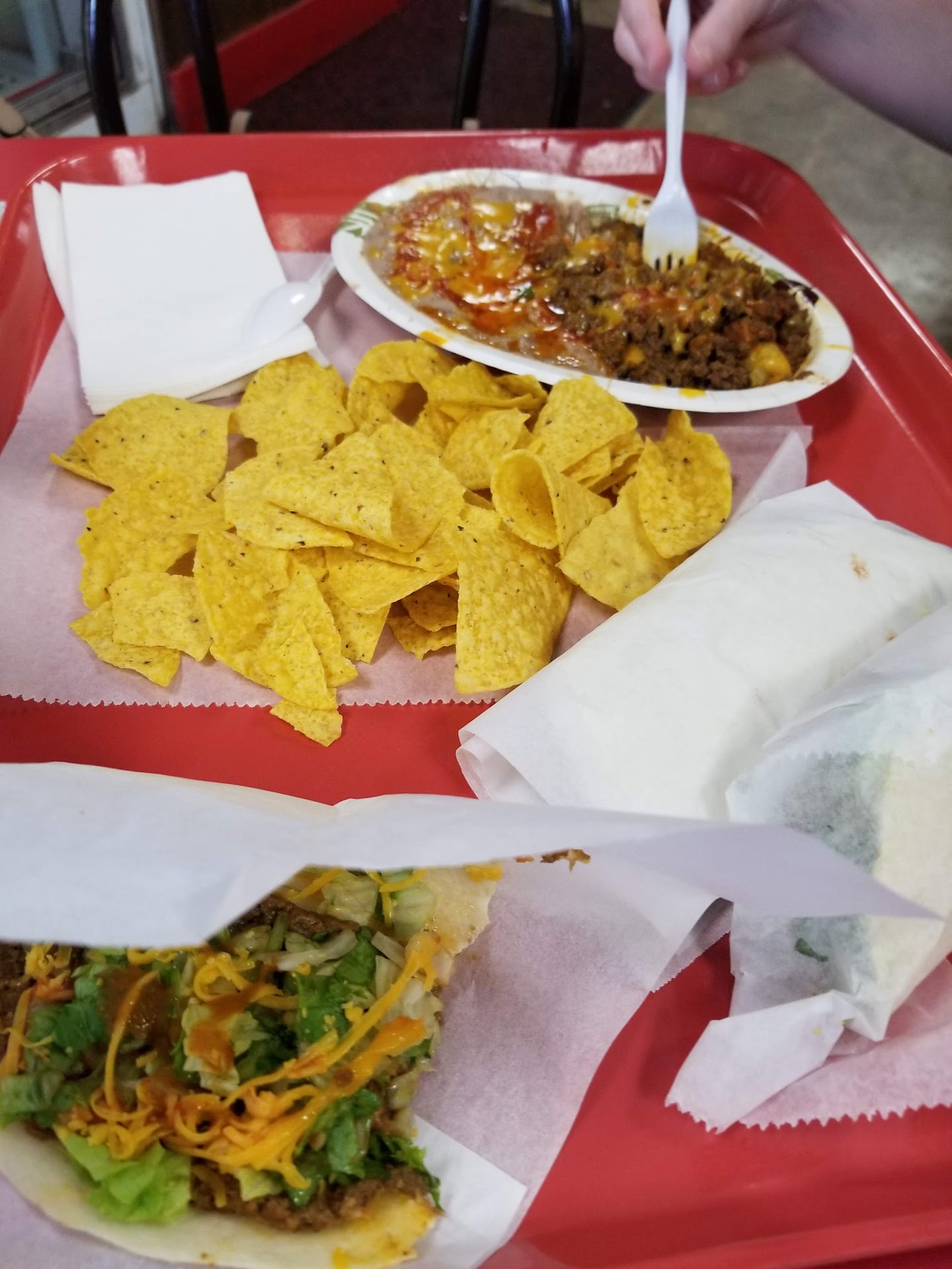 Read moreOMG, it's SO much freaking delicious! I guarantee, you've never tasted anything like their beef seasoning. Eat it once and it'll be eternally seared into your tastebuds - and not from the heat. It's not hot, but they can make it that way if you like. You'll never be ambushed by meal ruining heat there. Their hot sauce is out of this world! I put mild on everything and it's also available to buy for your own kitchen. Your kids will love it and will beg you to take them back again and again. There's something fun to look at in every corner, from floor to ceiling. And They LOVE kids there. I started taking mine just about from birth and they have never forgotten us. They still ask about both my kids every time I go in. They watched them grow up. Even the employees that never met talk about them like family. It's like, authentic personalized customer service is as much a part of their training as food prep. It's SO affordable and the portions are enormous. Also, if you're in the market for beer or cigarettes, they have the best prices in town. I recommend the Sancho, the "Nacho" - which is a flat fried corn tortilla round dripping with cheese and mild sauce. The Supreme adds beef. Vegetables and sour cream can be added. They also have regular Nachos, Taco Burgers, fresh made guacamole on Wednesdays and Fridays. Get a combination burrito and you'll be using both hands. Literally. Crispy and soft tacos. Chicken tacos, enchiladas, sopapillas, so much more. OMG, I could go on and on. Lunch rush is almost standing room only so go early for a seat. They close way too early (around 8) and closed on Sundays and Mondays. If you're going, stop by and grab me though. I can't...