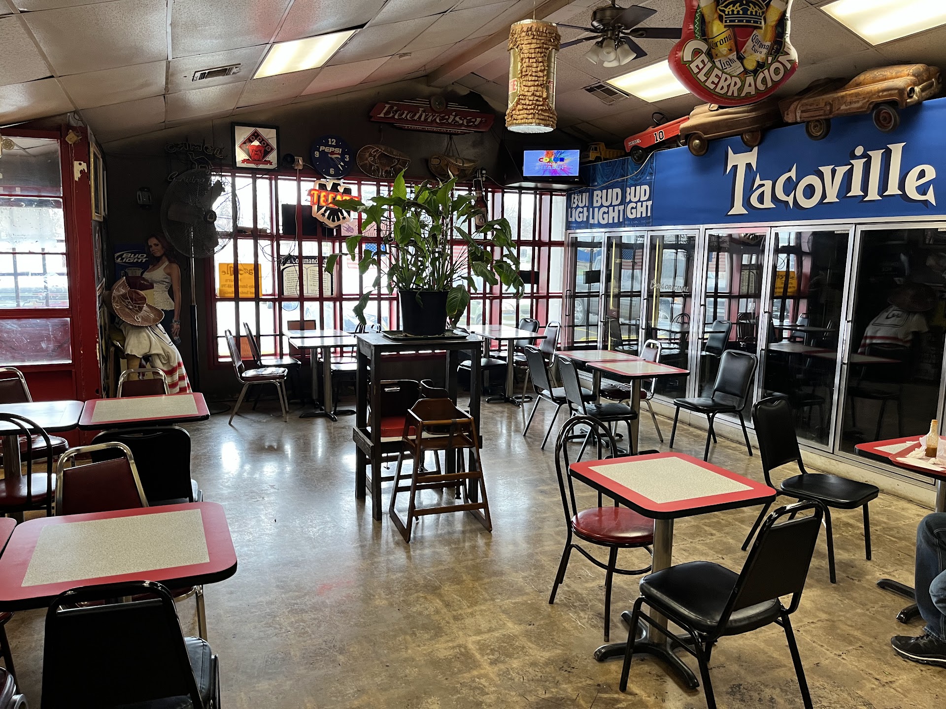 Tacoville is simply good Tex-Mex food. Their meat is delicious and uniquely flavored. Their bean are great and twice a week they have homemade guacamole.