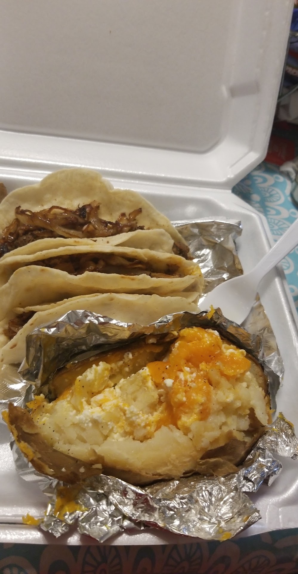 Read moreTortillas are regular-sized, they are not like the street taco mini-tortillas. The corn tortillas are homemade. The taco meat was good but was not seasoned, it needed a little salt. The salsas were good, tho. I ordered a baked potato, taco and drink combo. It was decent but i asked (and paid extra) for carne asada meat to be added to my baked potato and i didn't get it. I don't live here and am just passing through so i didn't bother going back to fix it. The employees were helpful...