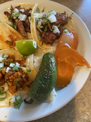 Ā Ā Ā Read moreWe wandered into this place and were so glad. The lady there was very pleasant and helpful. You will not find better prices for this food of food! The aesthetic is fun and authentic. I think authenticity is the best word to describe this place as a whole. The salsa is good for those of us who donāt like spicy stuff, with some great flavors. We shared two plates. A plate of 4 street tacos, with 2 spicy pork and 2 fried pork, then a plate of chicken flautas. The flautas were crunchy and the guacamole on them was the bomb. The spicy pork was great, but we both loved the fried pork tacos the most. They came with some pickled carrots and onions which I put on top of my carnitas. I am in pain now because I couldnāt stop eating the delicious food, and I...