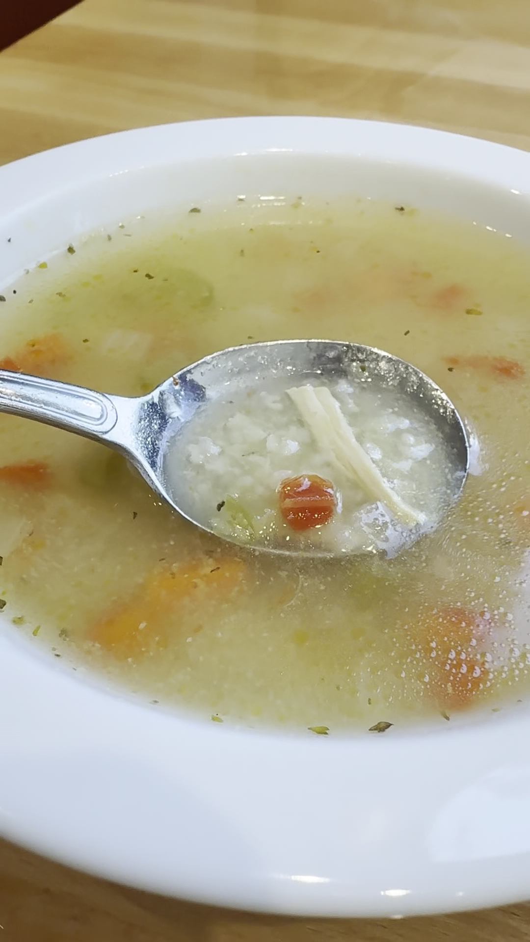 So to the food. We got the Empanadas (2 beef / 2 spinach - $12). They were really good. The orange sauce they give you with it is pretty spicy. The green is like a cilantro creamy sauce. Both were very tasty with the empanada and frankly with our entire meal. Before they brought out any of the food they served us a bowl of soup. You can see in the photos it’s a chicken broth with some rice. It was really good and even better, it was complimentary.