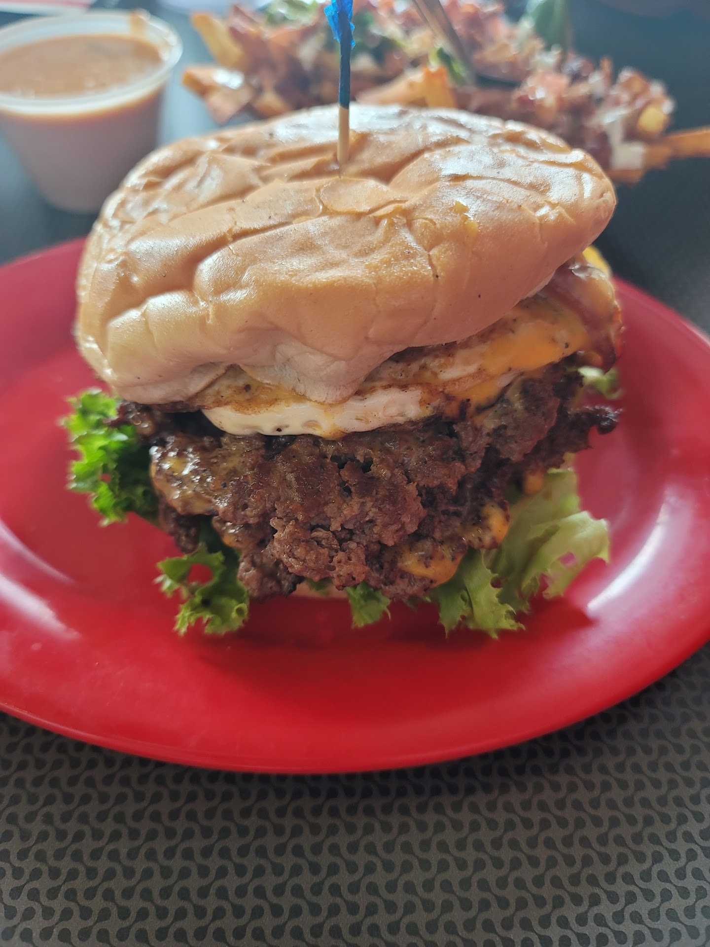Read moreThis is my new go-to place for burgers and fries in OKC! Surprisingly, I came across this place when searching online for the best queso in town. My party was feeling like burgers, so we came here. It was a Saturday night, so the line was fairly long, but the employees were very quick taking orders and getting through the line. All employees were very helpful and friendly, providing recommendations and great service. The atmosphere was just like any other sports bar, with TVs and a lively crowd, but it wasn't too loud you couldn't have a conversation.