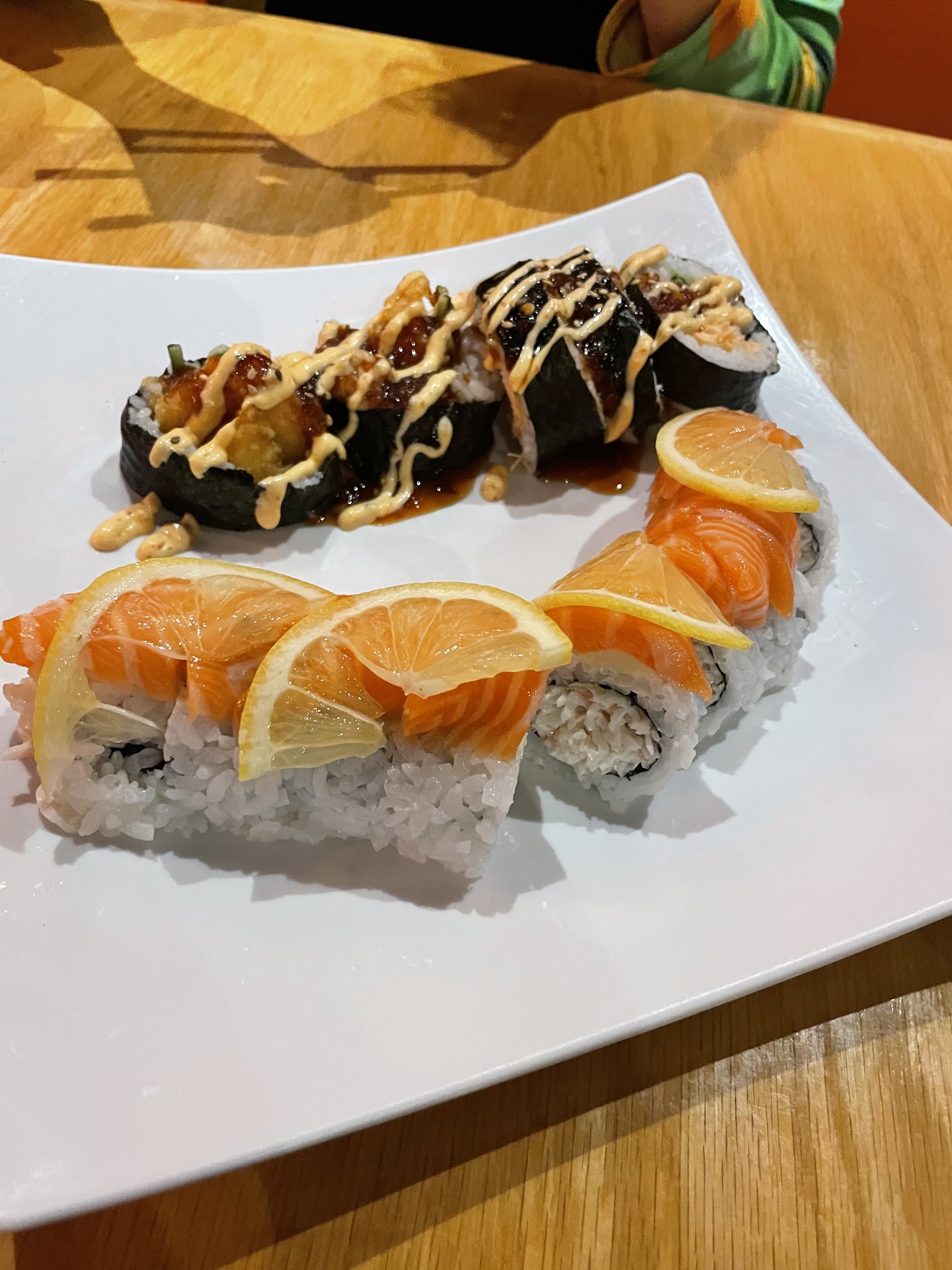 Read morePlace was dead on a lunch hour at about 12:15. The sushi was decent. Wasn't as cold as I'd have liked it to be. I also noticed the sushi chef didn't wash his hands before handing my food, as I was sitting at the bar. Then I noticed he went outside and came back, sat down, and when another customer came in and he took their order and again... Made it without washing his hands. That was just utterly disgusting to me. There's an obvious reason to washing your hands before you're handling someone's food, but secondly, it's better to handle the sushi with colder hands. I got a rainbow roll for 16 bucks, a single Sapporo beer, and a hot sake that we're 10 bucks each. Ended up being 42 bucks before tip. I'm not a cheap person, but house sake...gekkeikan?? Alcohol wasn't on the menu but I assumed the basic prices with other restaurants. Place is overpriced for lunch and no lunch specials either. The dinner atmosphere might be different, but based on my experience, I was over charged and wasn't at...