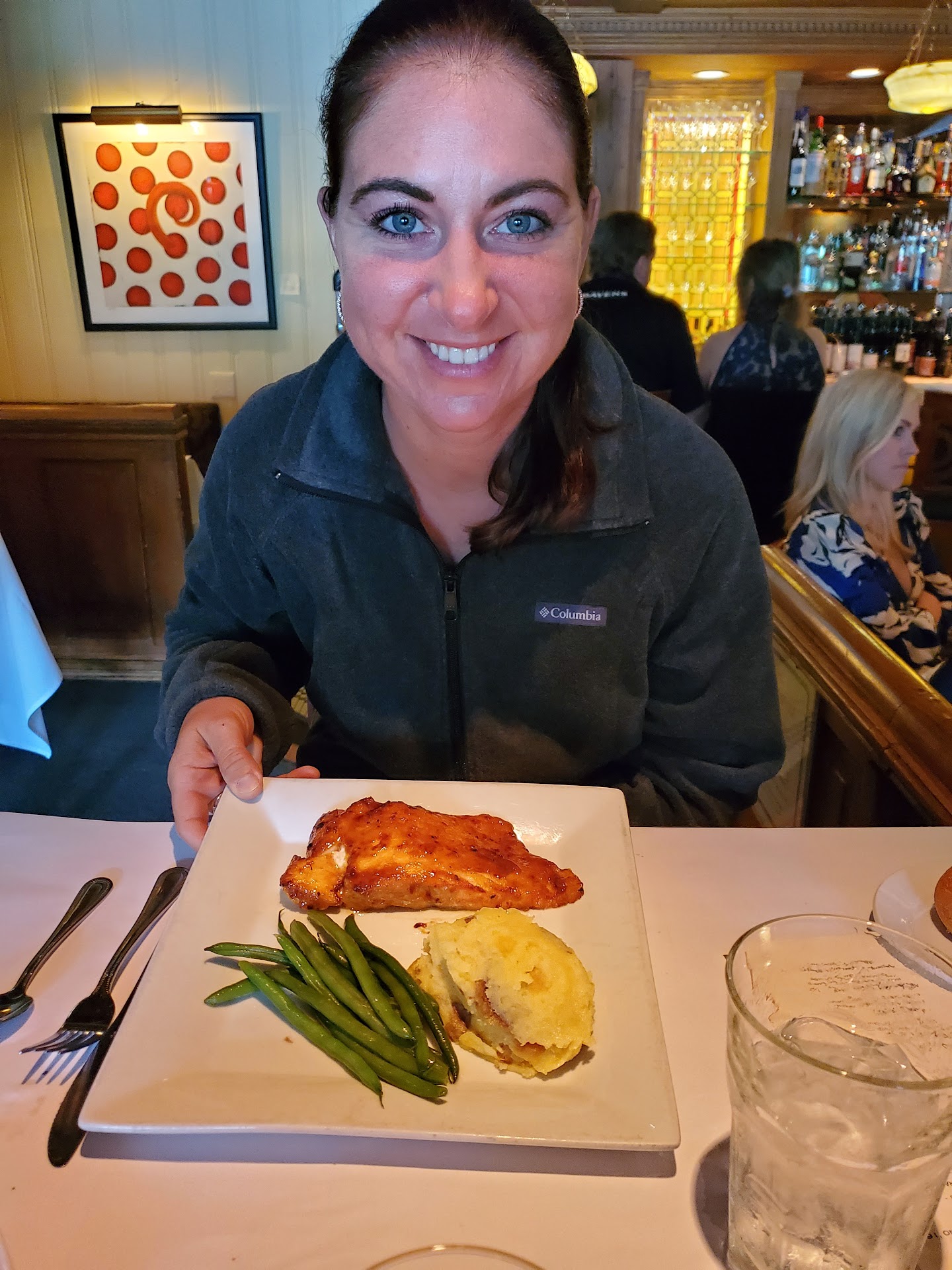 My wife got a rack of lamb which was pretty good. Bottle of wine was good. French onion soup was good.