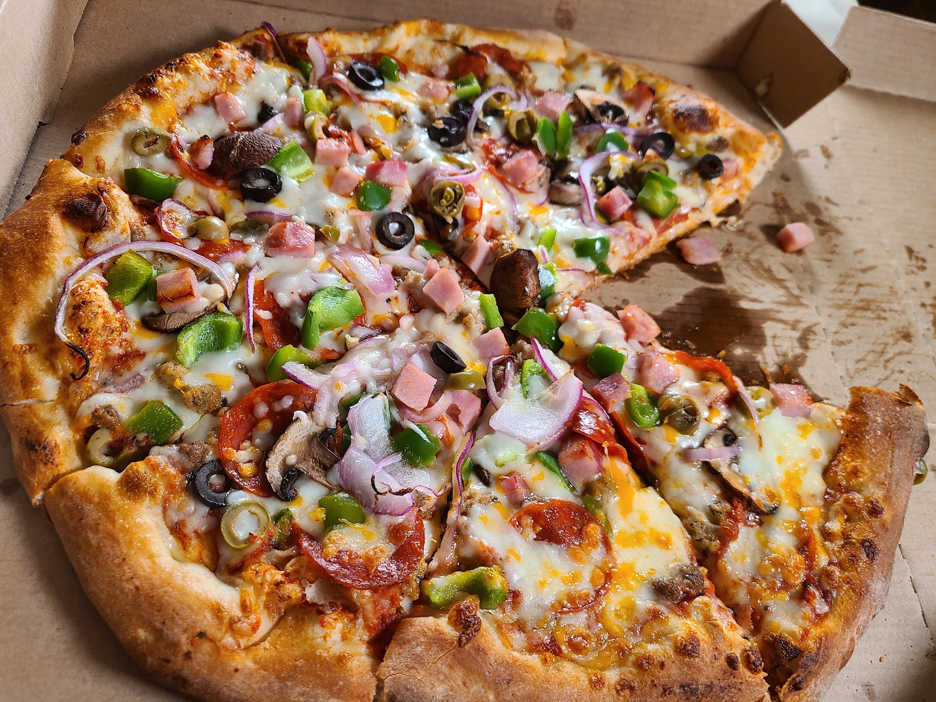 Read moreI dont even get why half the people here are whining about. The thing is people only decides to put up a review only when their food was bad, not the 100 other time when they got their food well above what they have paid for. The pizza that i ordered was delivered within 50min. They promised 30 - 45 but i wont stretch on that. I ordered a Large Veggie pizza and guess what i was amazed how fresh all of their toppings were. The cheese was out of the world, for a change they did not try to save money on it and actually did serve fresh mozzarella. The pizza was cooked to a perfection. For Large Veggie for 13.99 i would order that any day. FYI: i worked at a handful of Name Brand pizza places and i know how they make their pizza and there is nothing healthy about it neither do they walk along "...