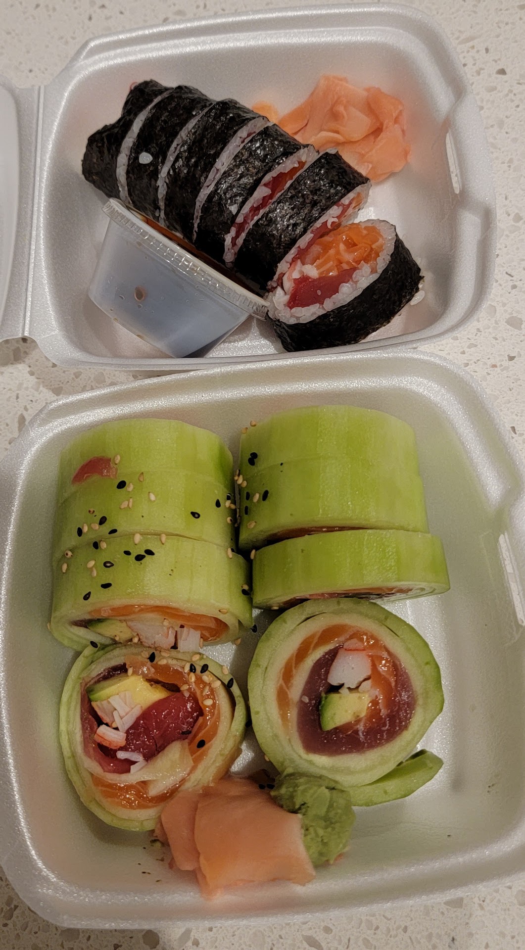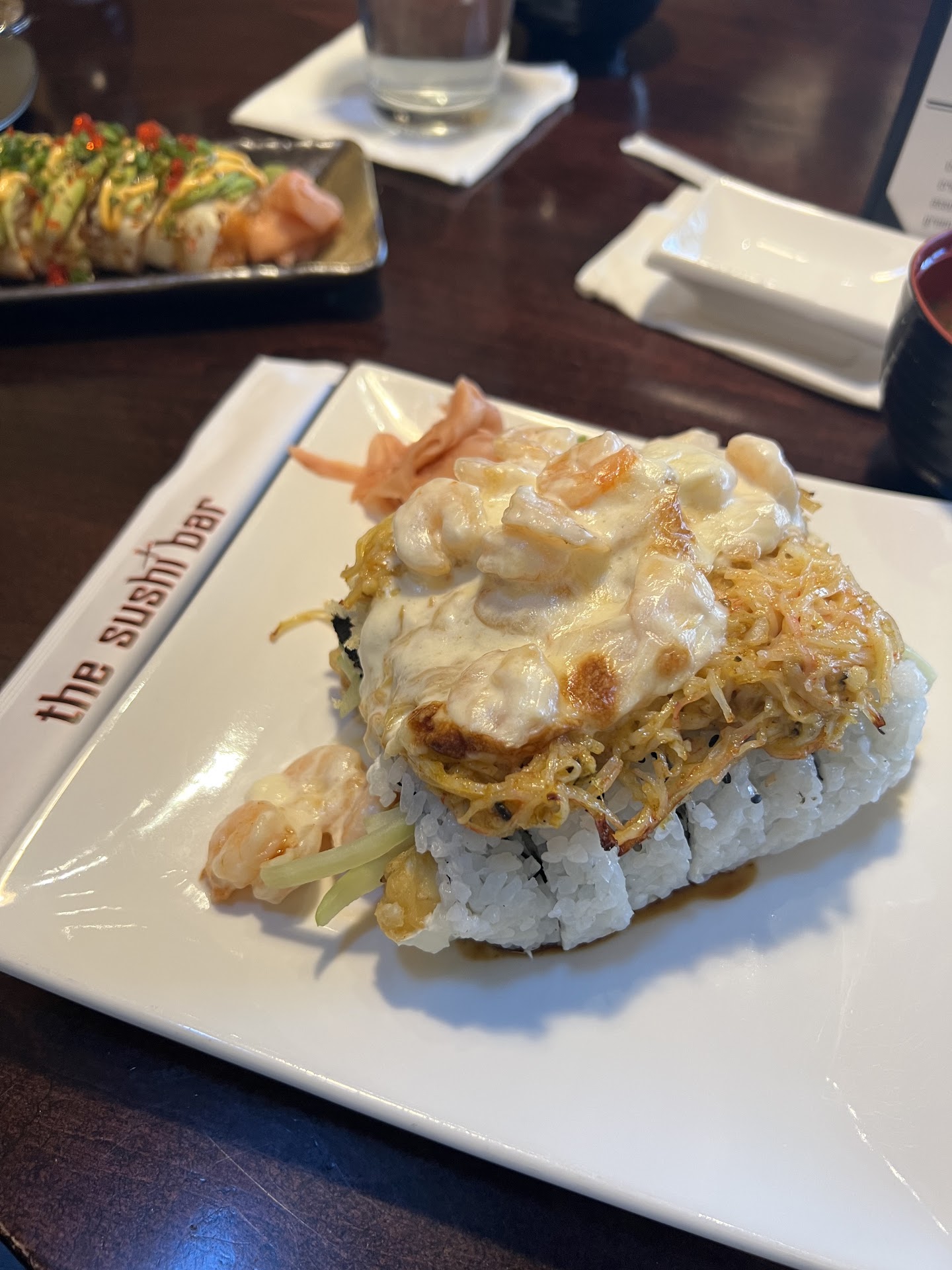 Read moreI've never been to The Sushi Bar so I wasn't sure what to expect. First off, the atmosphere was really nice. They had tables throughout (both inside and outside) and this neat area where you can go sit in a big round table. You don't have chairs but you sit on a small pillow and you leave your shoes in another area. It looked like a fun experience. When we were seated our waiter came and took our drink orders. I love multiple lemon slices on the side that I can squeeze in my water. He was sure to give me plenty of lemons, which was a big positive. He asked if we wanted an appetizer to which we said no. Then a few minutes later he came back and took our order. As we waited he came and brought a bottle of soy sauce to our table and refilled our waters. Then our food arrived. I ordered J's special and my date had Captain Crunch and something else. I've eaten sushi in multiple restaurants and hands down this was the best I have ever had. They did bring you chopsticks which I used but struggled as I've not learned the proper way to use them. Although it would have been nice if the training clip was offered but on the other hand I didn't ask. Another thing I noticed that it was not loud in the restaurant although it was very busy (it was a Saturday night at 7:45pm). I seriously can't...
