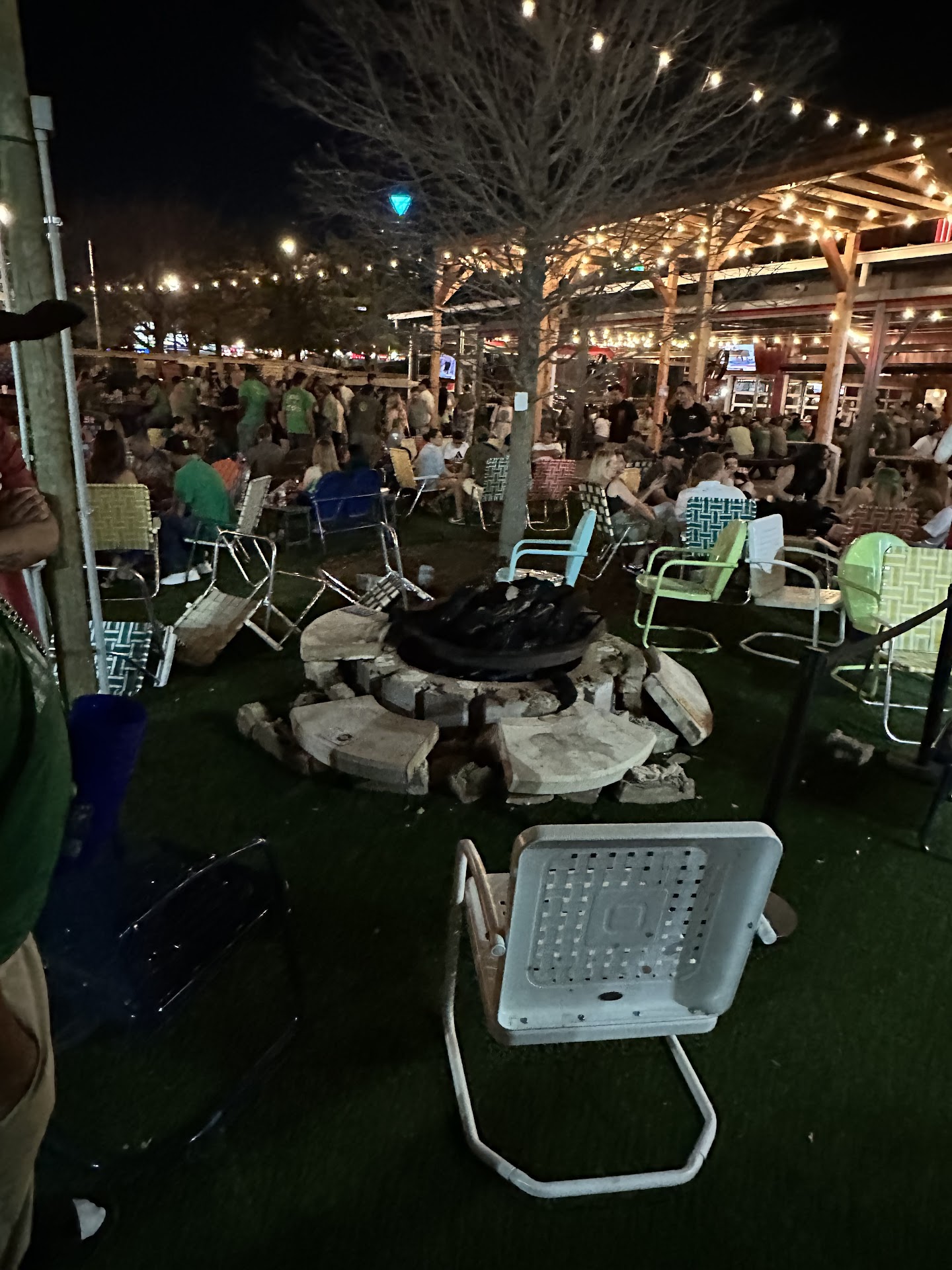 On St. Patrick’s Day, my husband, daughter, her boyfriend, and I visited we spent about an hour and a half sitting around one of their fire pits, enjoying the atmosphere. Without warning, the fire pit exploded. Debris landed on my leg, and in my panic, my daughter had to lift it off. The blast’s heat also hit the side of her face.