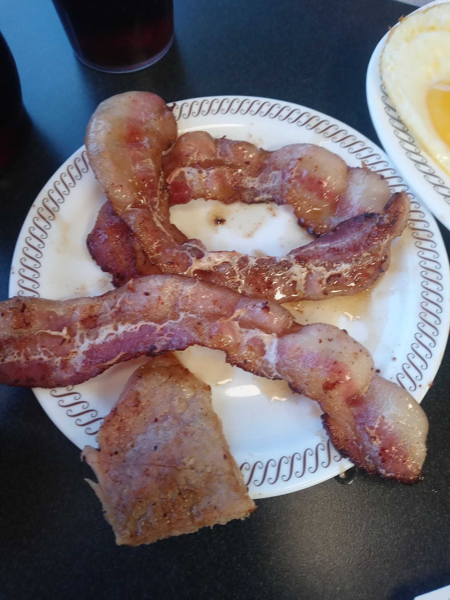 Read moreThe staff was very friendly and courteous, we ordered the all star breakfast, my kid wanted chocolate chip waffle but the cook didn't actually add the chips to the batter just threw them on top after the waffle had been cooked and it was still raw in the middle, same thing with the scattered hash browns with onions and jalapeños they were just thrown on the top of the hash browns, my waffle actually came out as a broken waffle pocket, it was the 2 sides of the waffle just lying on each other, the bacon was raw as well as the sausage patties in the center, the country ham was gray with an odd taste, and sadly my hash browns were not fully cooked and had a cold mush middle, the server asked if I wanted the waffle and I was like no thank you and let her take it, she could see we didn't eat those meals because we just pushed them off to the side, we did let the cashier know that the whole meal was terrible, the morning shift cooks arrived while we were eating and I made sure to let her know that it wasn't them that cooked the food, (the food they were sending out looked right) I think either the night cook needs retrained or trained to cook or he was close to the end of his shift and didn't even try, but it's waffle house and sometimes you get good staff,...