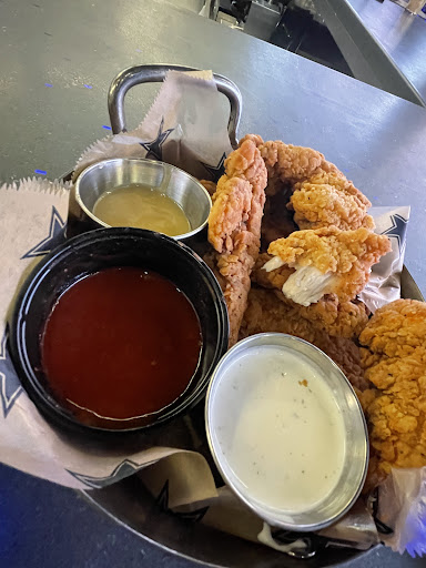 First time going here with the family and the food was delicious! The menus are given attached to a metal slate with the Cowboys logo on the back. There is also a large book style menu at each table that is The food was served in generous portions for dinner. We had the cowboys cheese-steak, blue star burger, pepperoni pizza, and and order of game-day nachos as an appetizer. The pizza comes as a full 10" pie that you can even watch being cooked if you are seated near the open flame oven. The cheese-steak sandwich was.. exceptionally greasy. The shaved ribeye had so much grease that the bun ended up falling apart only a quarter into eating. One more thing, a woman seated at table next to us had ordered a Caesar salad seemed pretty disappointed when she saw it, and for good reason too. For $12, a salad should not be composed of entirely iceberg lettuce, there wasn't a single hint of romaine anywhere (maybe they ran out?). So if you go here maybe skip the salad, unless you're ok with paying a premium for iceberg lettuce.