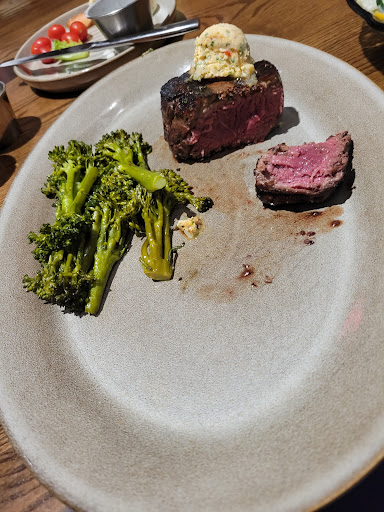 Read moreUPDATED... As promised I returned to try the steak. They were very accommodating with our group of 9, and even whipped up a rusty nail cocktail on request (look it up, classic but one of my new favorites). Spicy bloody Mary and warm rolls with honey butter was just what I needed to start. 12oz rib eye over crisp onions, with green beans and loaded mashed potatoes was excellent and cooked to perfect medium rare. Tried my wife's salmon and cheddar mashed potatoes with asparagus and was also excellent. For a steak house of this caliber the prices are actually well-suited.