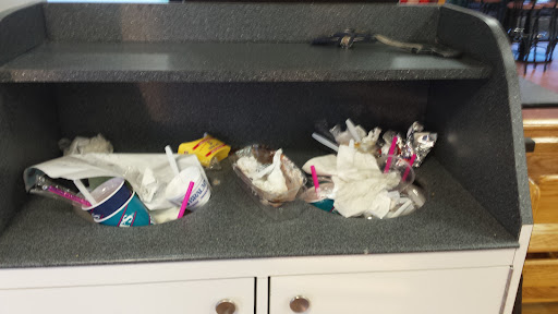 While visiting inside and shopping in the fresh grocery area, she proceeded to come from behind the fast food counter hollering for the person running the register to ring customers up... Mind you there were 5 people in line. 2 people ahead of me. And the cashier was having to open boxes for the 2 paying customers in line ahead of me. Not offering any assistance to the cashier or the customers at all. Then quickly turns and goes back to fast food.