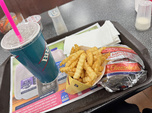 Braum's has good Burgers - just don't go with the "Braum's sauce", unless you're into that sort of thing. I've heard it is just a mix of mayo and ketchup, but I don't get that flavor from it. Surprisingly, the chili is great, and it's a good comfort on a cold evening. The chicken strips are usually too dry and crunchy, but sometimes you get lucky and they're edible - and when they are, they have good flavor. If you eat inside, the dining area is large and clean. The restrooms are probably some of the cleanest in town. Just avoid Wednesday or Sunday evening since the church crowd is usually there and it's packed. If you just want to grab and go, the drive-thru is usually fairly quick - not McDonald's fast, but it's fast enough. Your food is made-to-order, so the amount of time spent waiting is really on you if you don't want to sit and wait. I don't usually eat the food here though, maybe one to three times a year. I do however, shop in the fresh market up to 5 times a month. It's a lot quicker than going in the grocery store and having to walk the entire store, only to spend more time standing in line than you did shopping! Braum's has a limited, but adequate selection of fresh veggies which are often more fresh than Homeland. The oatmeal is absolutely to-die-for and I have not found it anywhere else. The muffins are large and so gooey soft, you could live on them, lol. The brownies, unfortunately since Braum's changed the package are not that great - before they were super thick, so gooey and chocolatey, not too many walnuts, just perfectly amazing. Now, they're thinner than before, so overloaded with nuts, and dry AF because of the way they are separated from each other in the new package - which btw is near impossible to pry the brownies out of. Other than the brownies, pretty much all the baked goods are fantastic. Even the bread is great. I like the specialty, or gourmet breads which are surprisingly priced well (under $3 if I remember correctly). The milk here is the ONLY milk I will buy. It's hormone free, that's all good and well, but I get it because of the way it tastes. It's sooooo good! Braum's also has some of the best steaks I've ever purchased and the prices of their meat products are very reasonable. And of course, they have the best ice cream EVER. It's good if you are just running up to the counter for a scoop or even a sundae - which are actually really cheap! But the best bet are the quarts of ice cream. They are very well priced and they often have specials where you can get 2 for $6 or maybe 2 for $7. I hate that I can only get my favorite one 3 months out of the year 😭, but it tastes like a cup of swiss miss hot cocoa and I'm obsessed, lol. The main negative about this place is the employees. Most are nice and accommodating, but most are just plain stupid. I mean that as nicely as I can. It's not their fault really, I put it on the management for not training them - and maybe the management aren't trained well either. Most, if not all cannot even split your total balance with cash and debit - it's totally out of their scope! There's one manager who is a total cunt - and he's grossly unkempt, but he's also worked there for more than 10 years, so I don't see him...