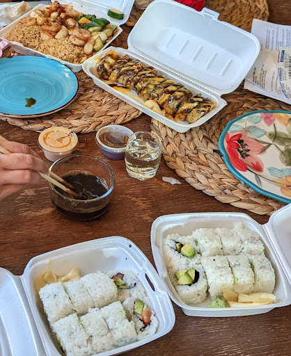 Read moreIf I had known how good the food would be I would have taken better pictures! In picture: seafood hibachi special (lobster, calamari, shrimp), Okmulgee roll (center frame), Alaska and Avocado rolls (bottom left to right).