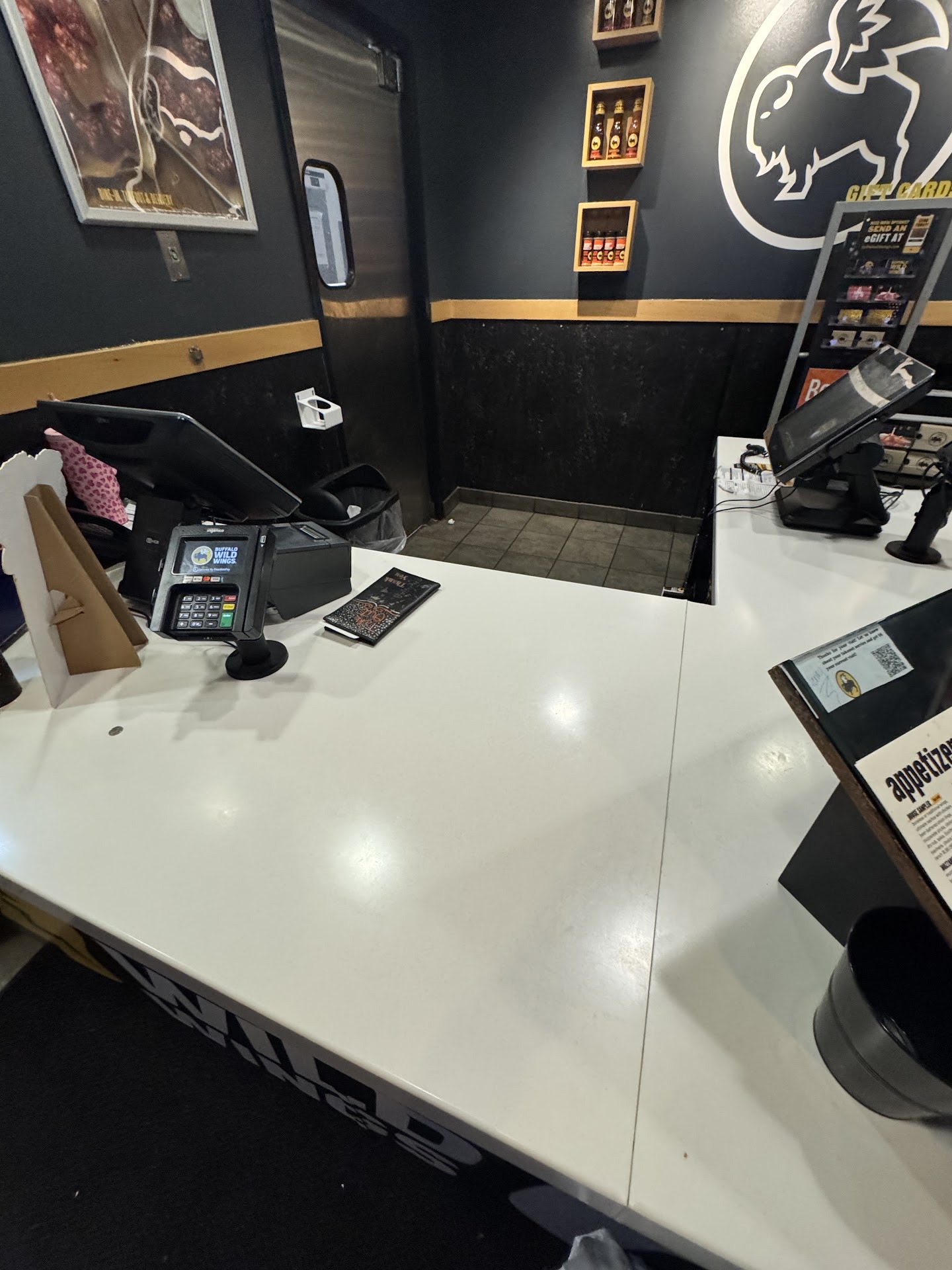 Not sure if it was because I ordered it for take out at 11 PM or not, but my first experience at this location was horrible. I arrived 10 minutes after they said the food would be ready and I had to go back and forth to my car three times before I got all of my food because the servers kept forgetting to hand me stuff, but they made sure I paid. They kept bringing the food out of the kitchen everytime I came back in too, so not even sure if the food was even ready or not even when they said it would be ready in 20 minutes when I ordered from them 35 minutes ago. The employee who came to the front didn't even want to help me there at the counter and made me go back to the bar counter where it was extremely loud and I couldn't even hear myself think. (This place was not even busy at this time. Maybe like 15 patrons in the entirety of the place and all of them were ONLY in the bar section and the music was almost club volume. Even worse that it took that long to make my food and actually give it to me only to arrive home with cold food (I only live maybe 6 minutes away from this location). The food itself was way below par of what I paid for. I had the Buffalo Blue Burger and my girlfriend had the Buffalo Chicken Wrap and we got a snack size Honey BBQ boneless wing to share and a couple mini chocolate cakes. The Buffalo burger was smothered in nothing but blue cheese (I couldnt even taste the buffalo sauce just sour blue cheese), the patty was dry and rough, they burnt the bottoms of my bun and their onion rings were like rubber when they were cold. The wings were super crunchy to the point I only ate two and they put the wrong kind of sauce on them (pretty sure they gave me a regular BBQ sauce, I did NOT taste honey bbq). My girlfriend seemed to enjoy her meal but she did complain about the chocolate cake and the wings. They put both of our cakes in a plastic sandwich bag and both were in pieces and a mess of frosting rolling around in the box they stack in an upright bag. The wing box was messy and sticky with bbq sauce too. All of the food was wet from the steam in the box and it just did not look appetizing at all. I usually don't like to write bad reviews at all and I really enjoyed B-dub's food at other locations, but I think I will be avoiding this location in the future as this experience was a...