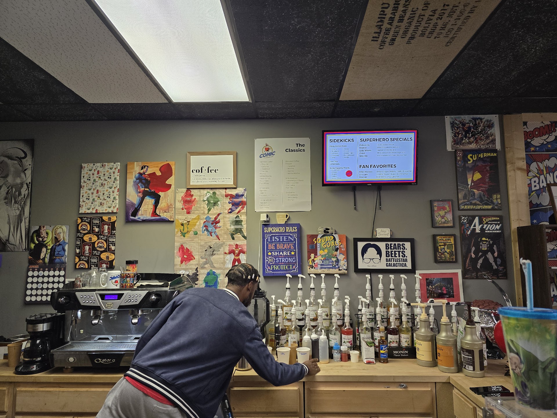 I met and got to chat with the co-owner Michael (opened with his wife), a huge comic fan (hence the name, branding). He was super nice, obviously a competent Barista, and very creative. He came up with an off-menu Smoothie for a couple other guests, which I then had to order myself, and it was one of the best smoothies I have had (Order "Pink Slime that tastes like Mango" and see if he remembers it).