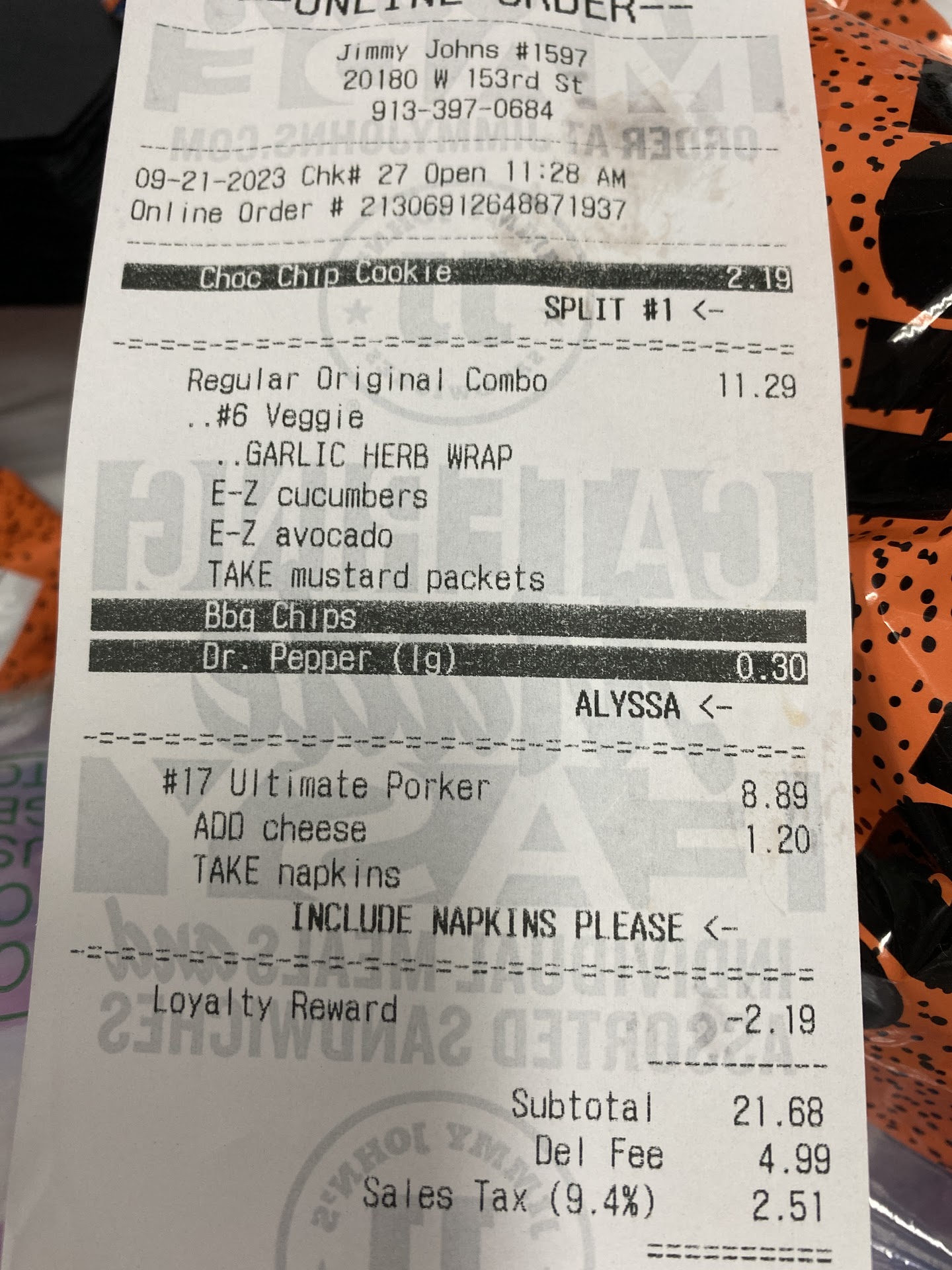 The previous time I ordered Jimmy John from this location, the driver knocked on my door. He informed me that he left half of my sandwich at the store and had to go back to get it. I told him okay. He then asked me if I was going to tip. On top of the delivery fee I had left $5 on the table outside of our door. I was baffled and half tempted to not tip after leaving my sandwich at the store…. Should just get the sandwich free! He came back 30 minutes later and didn’t take the tip from the table.