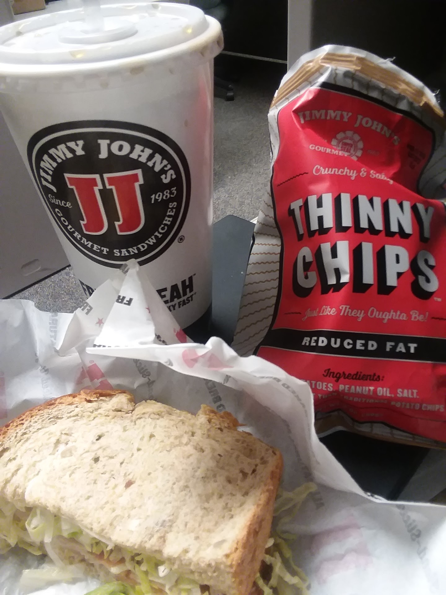 Read moreWent in for a couple sandwiches. I had to wait till the the 2 guys working to finish their convo about their newest tattoos. I placed my order & the sandwich maker was trying to read my order off the computer to which the guy taking my order only took about half the details of what I wanted. So as Im coaching the sandwich maker thru my order a piece of lettuce falls on his shirt. To my amazement he flips it off his shirt on to my sandwich. Smh. So he finishes my order & hands me my 2 sandwiches & 2 bags of chips. I asked for him to put them in a bag & he points towards the other end of the counter by soda machine & says "bags are down there..". I cant see the bags because the bags are on his side of the counter. He goes "thats what they tell us to do..". Smh I love Jimmy Jones but will not return to...