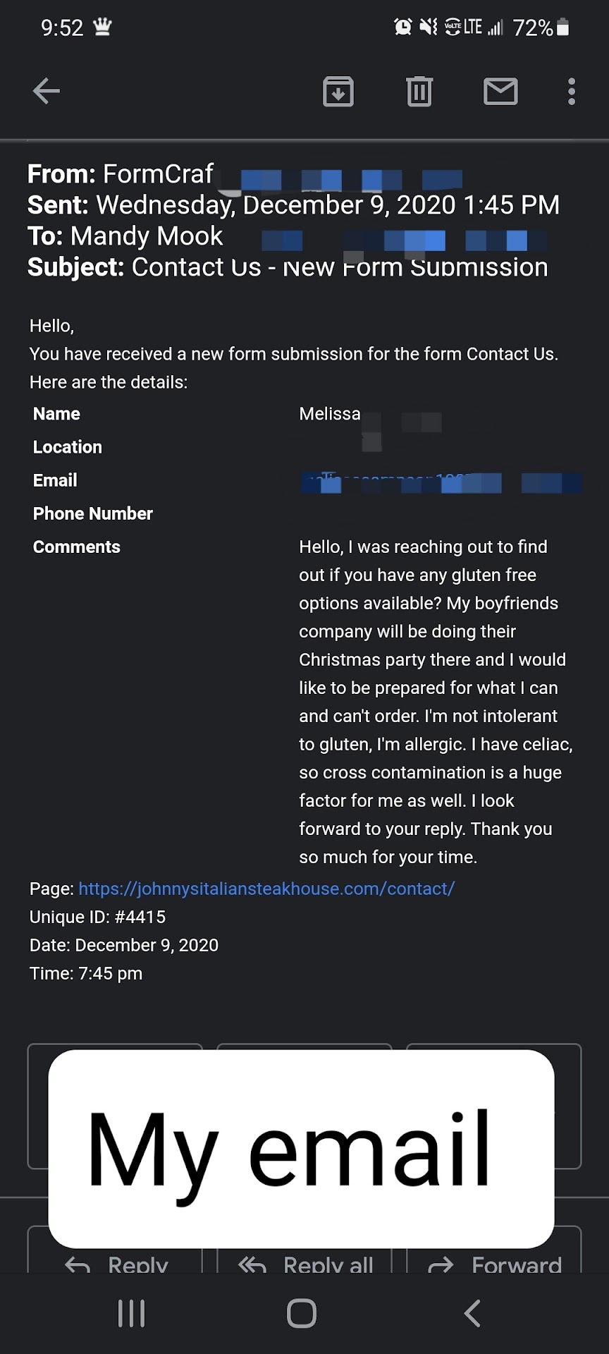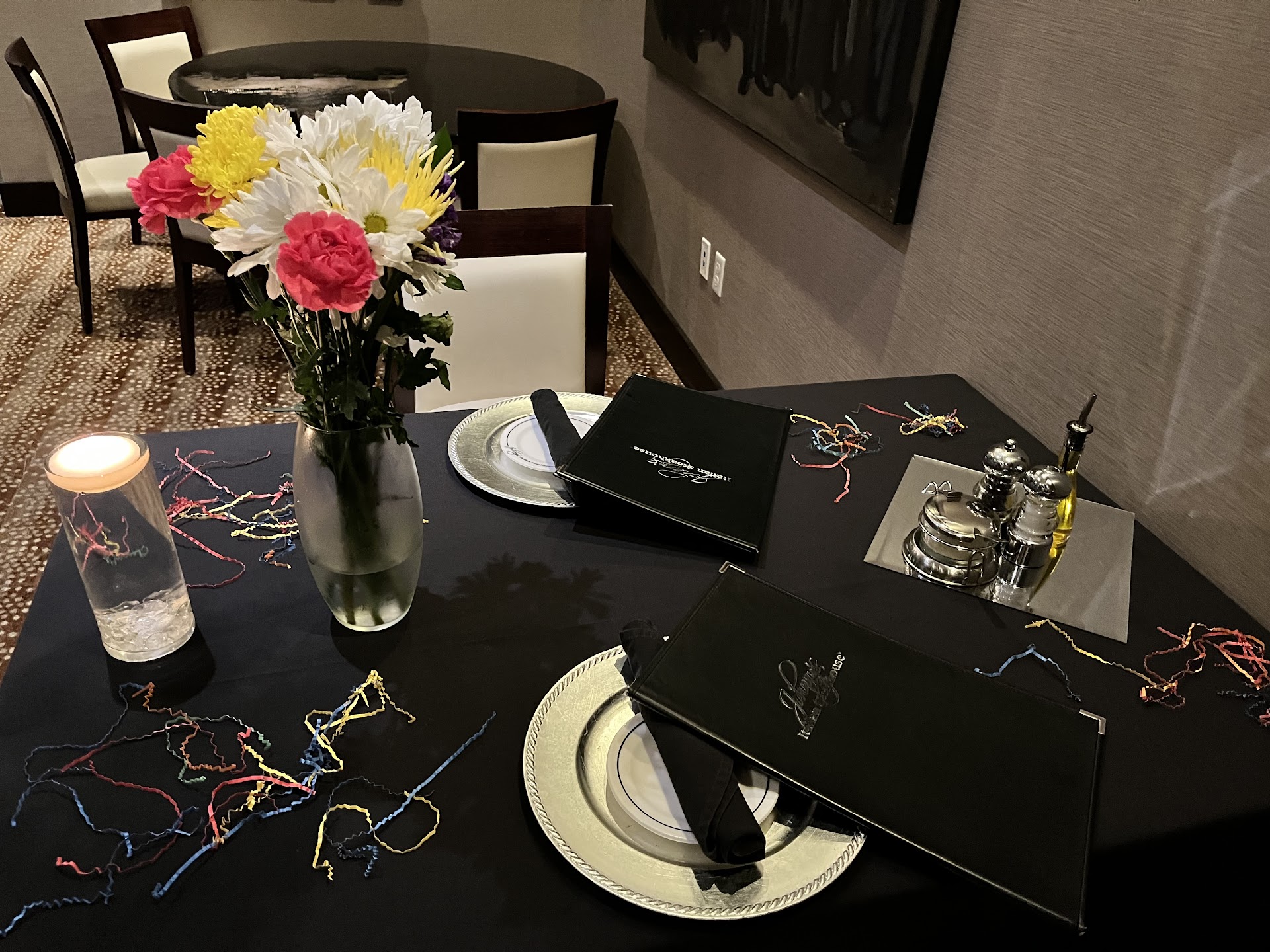 Read moreNot a very good experience for someone with Celiac. This was for a work Christmas party so I wanted to be sure I'd be able to eat something there. So I emailed the manager ahead of time to make sure they offered gluten free options. The manager was very timely in replying to me. Went on to reassure me that all I needed to do was explain my allergy to the server and everything would fine. The server took our orders, mine was Brussel sprouts, mixed veggies, and a medium-well ribeye with no seasonings, they tend to have gluten in them. This meal is also served with a salad, yay cause I was starving. Let me just say that everything was NOT fine. First, my salad came out with everyone else's. Not a big deal for most, but I'm allergic to gluten. It was sitting on a tray right next to salads with croutons, so I was unable to eat that. The young man I was with, however, came out separate so I was able to munch on his thankfully. After that initial shock I called the waitress over and explained, yet again, that I have an allergy and my food NEEDS to stay separate. Not a big deal, I tend to have to do that everywhere I eat. Anyways, my food finally comes out and is placed in front of me. I notice immediately that it's heavily seasoned and is, quite literally, dripping with blood. The fellow I was with looked over at it and after a brief conversation, we realized they had mixed up our steaks. So we called the server over and informed them that we had the wrong steaks. To which their reply was "Just switch them." This is the same server that we have now reminded several times THAT I HAVE CELIAC DISEASE AND CAN'T HAVE GLUTEN, which both steaks were practically saturated in with all the seasonings that were on them. Not only was there seasonings on them, they were also different cuts and cooked differently than how we asked. Why would I switch steaks and still pay the same price. We now insist that they take our plates back and remake our steaks. We eventually get our plates back, but with just the steaks. We have none of the sides that we had ordered. At this point we're just ready to go. For the amount of money you pay to eat here, one would assume that they'd be a tad more careful, especially since I had already reached out to the manager prior to the visit. Just an all around horrible experience for. Would NOT recommend this restaurant for anyone...